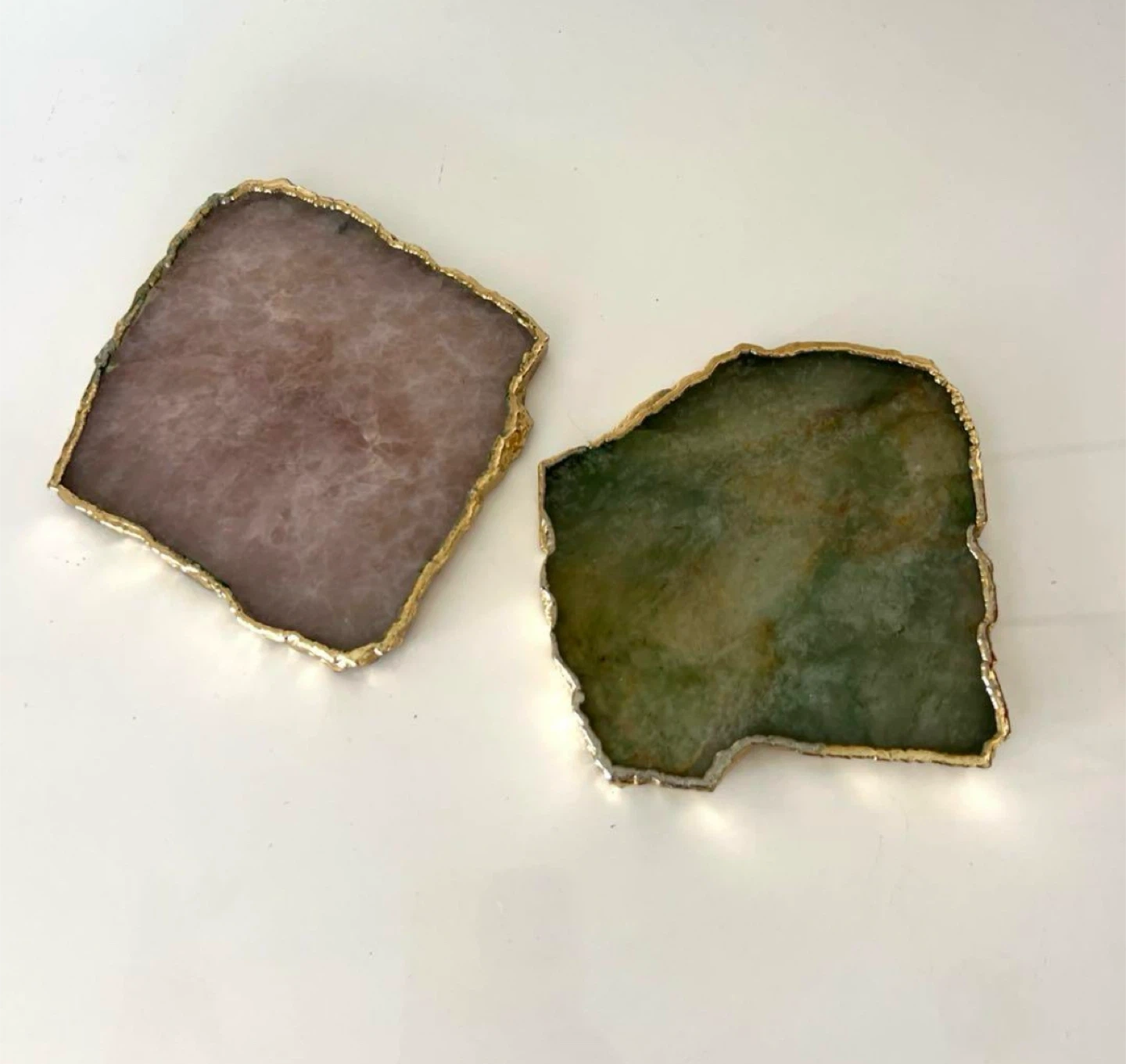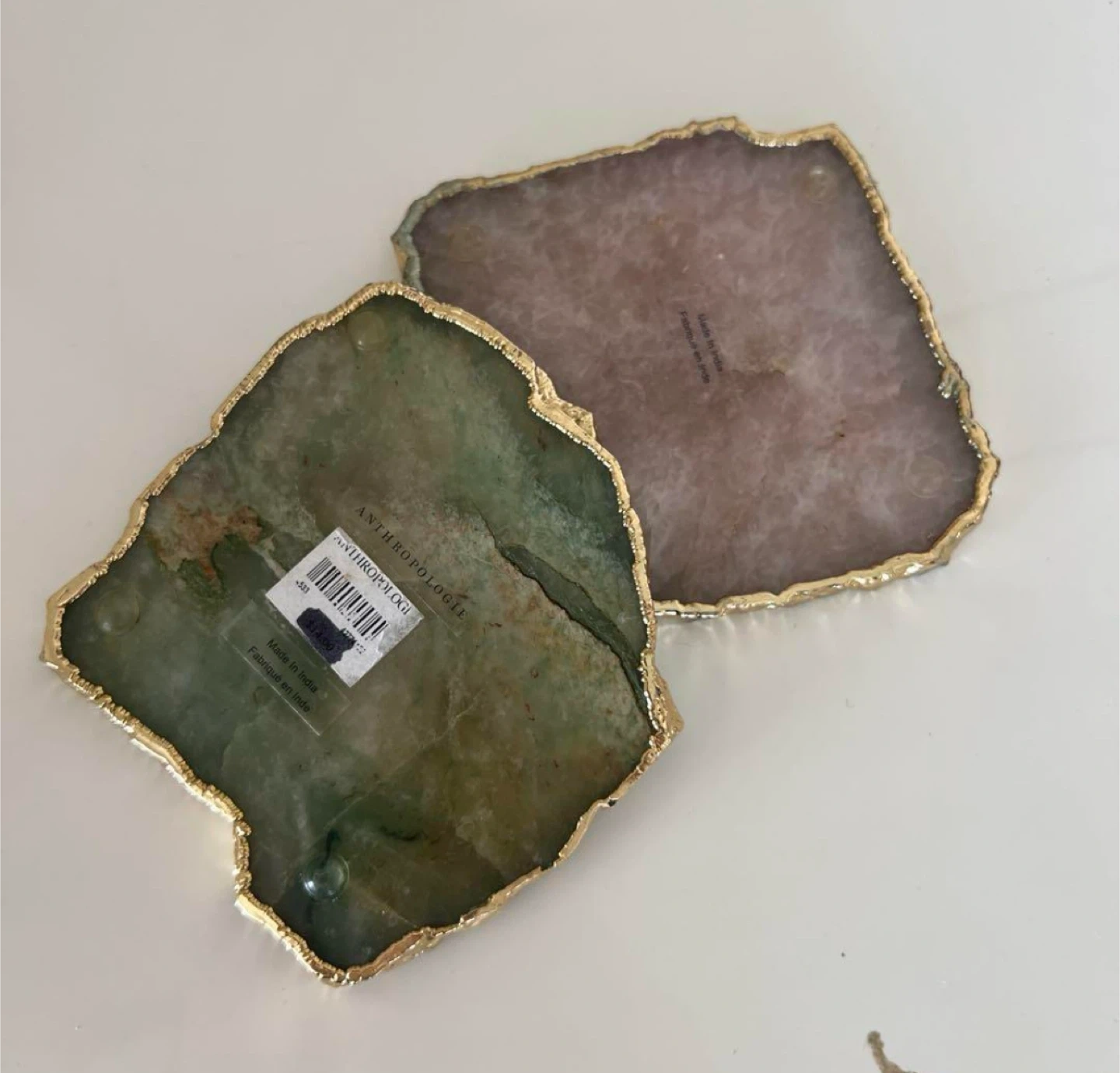 アンソロポロジーのコースター2個セットです ・ブランド:アンソロポロジー ・色:ピンク、グリーン ・状態:使用感少なめ 中古品であることご了承ください 【人気】Anthropologie アンソロポロジー 天然石トレーソーサー 各2500円 ハワイで購入