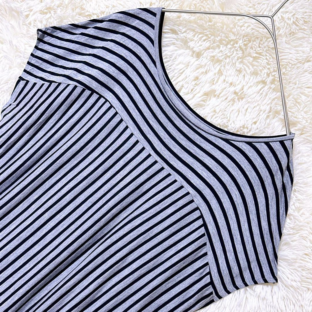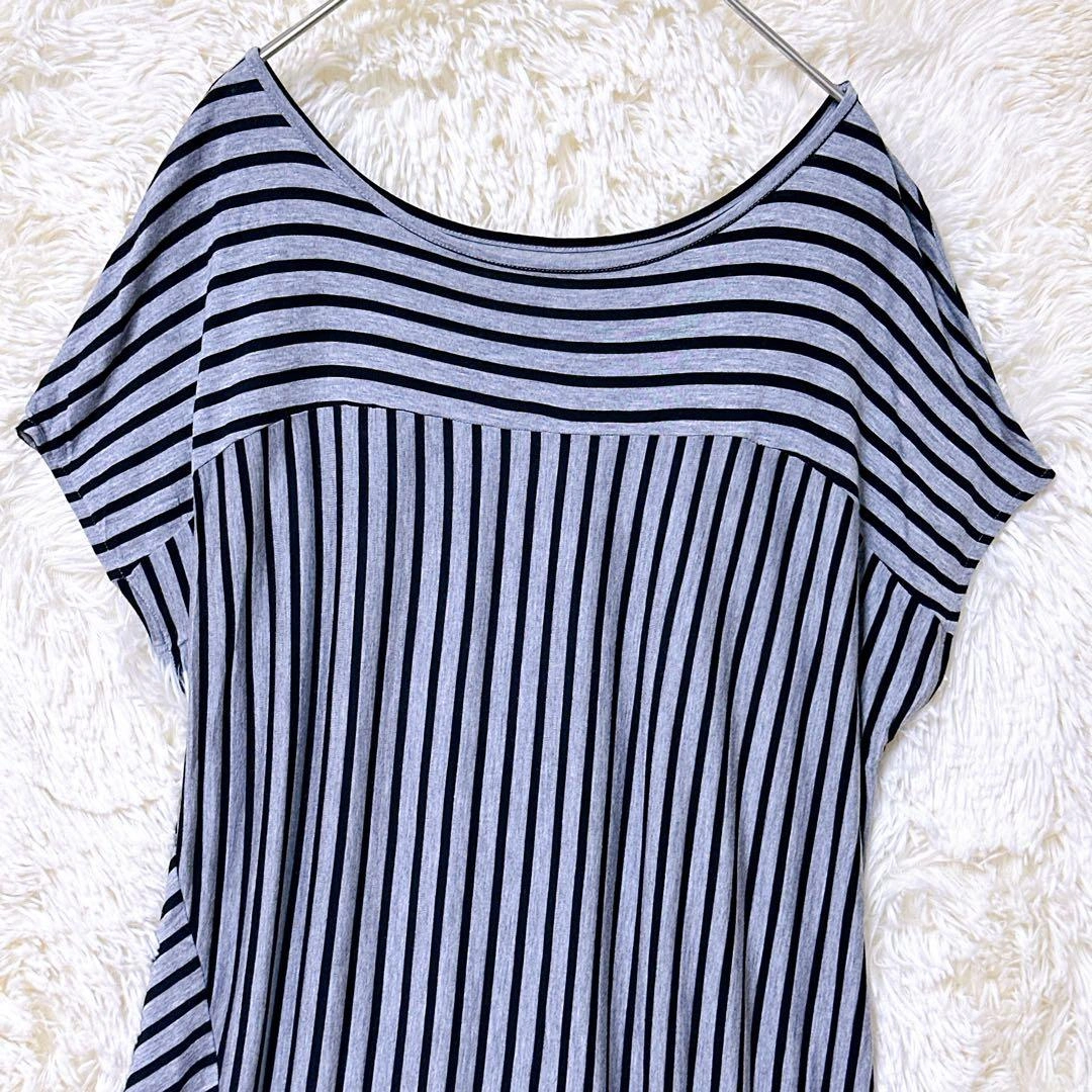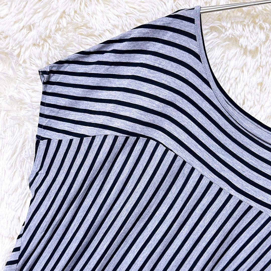 UNTITLEDのノースリーブTシャツです。 グレーと黒のストライプ柄、ボートネックスタイルで、柔らかい生地のルーズフィットです。 着丈:57cm 身幅:41cm 裄丈:27cm 素人採寸のため、若干の誤差はご了承ください。 写真にてご確認ください。 カラー···グレイ系 柄/デザイン···ストライプ 汚れ・破れ・臭いなど···なし ご不明点はお気軽にお問い合わせください。