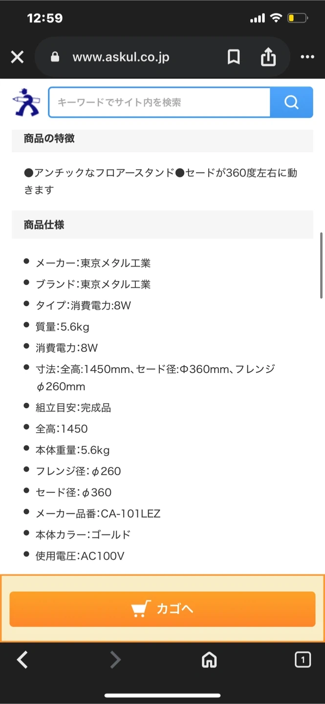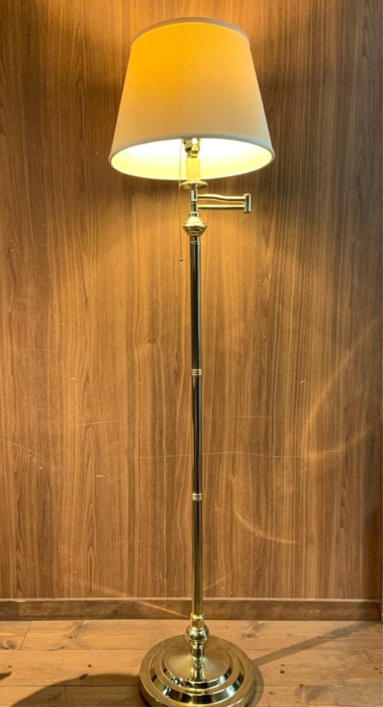 分解はできません💦 メーカー:東京メタル工業 ブランド:東京メタル工業 タイプ:消費電力:8W 質量:5.6kg 消費電力:8W 寸法:全高:1450mm、セード径:Φ360mm、フレンジφ260mm 組立目安:完成品 全高:1450 本体重量:5.6kg フレンジ径:φ260 セード径:φ360 メーカー品番:CA-101LEZ 本体カラー:ゴールド 使用電圧:AC100V JANコード #ロココ調#ヴィンテージ#アンティーク#ヨーロピアン#フロアランプ#インテリア#zarahome#Fran Fran#フランフラン