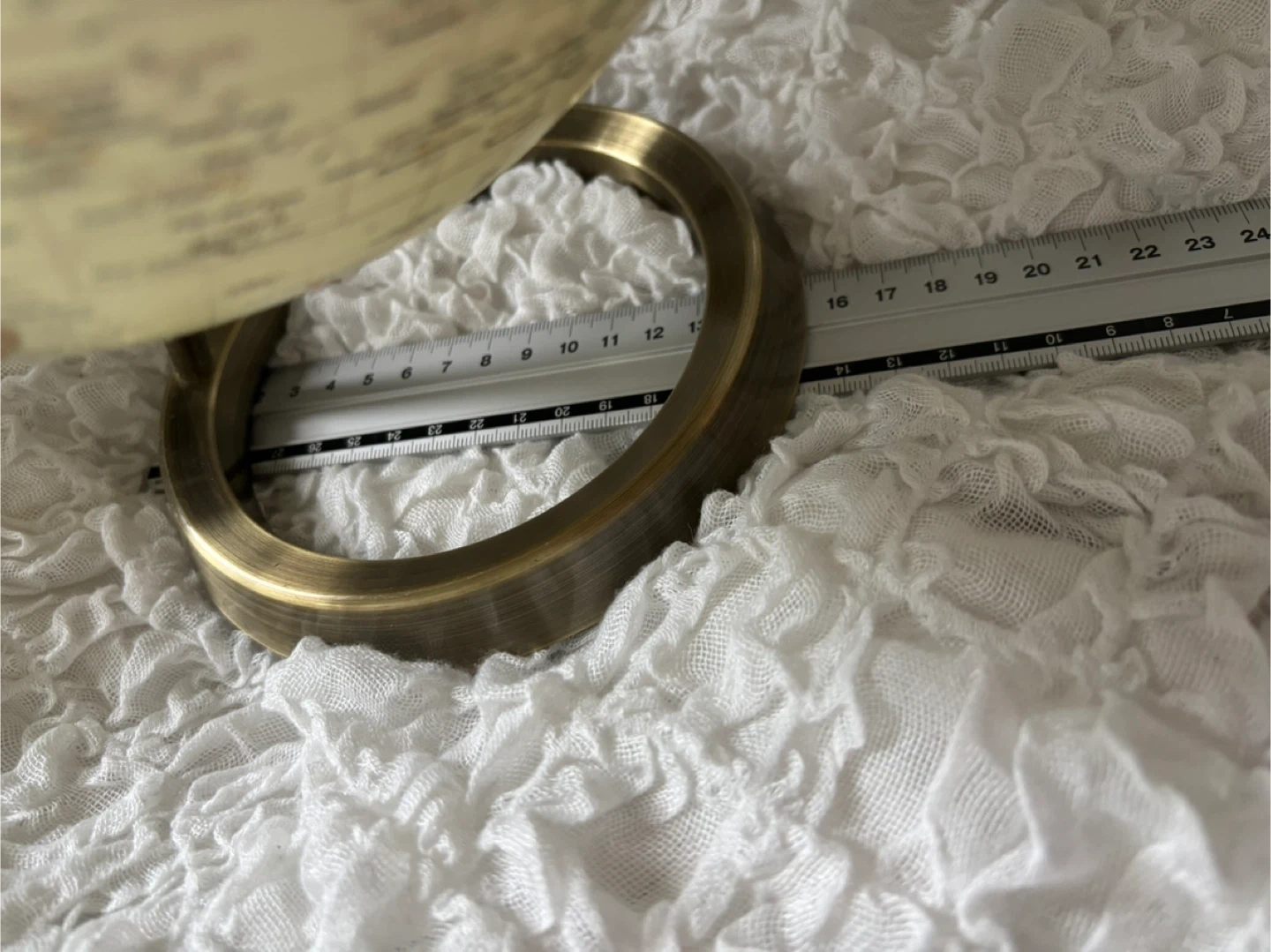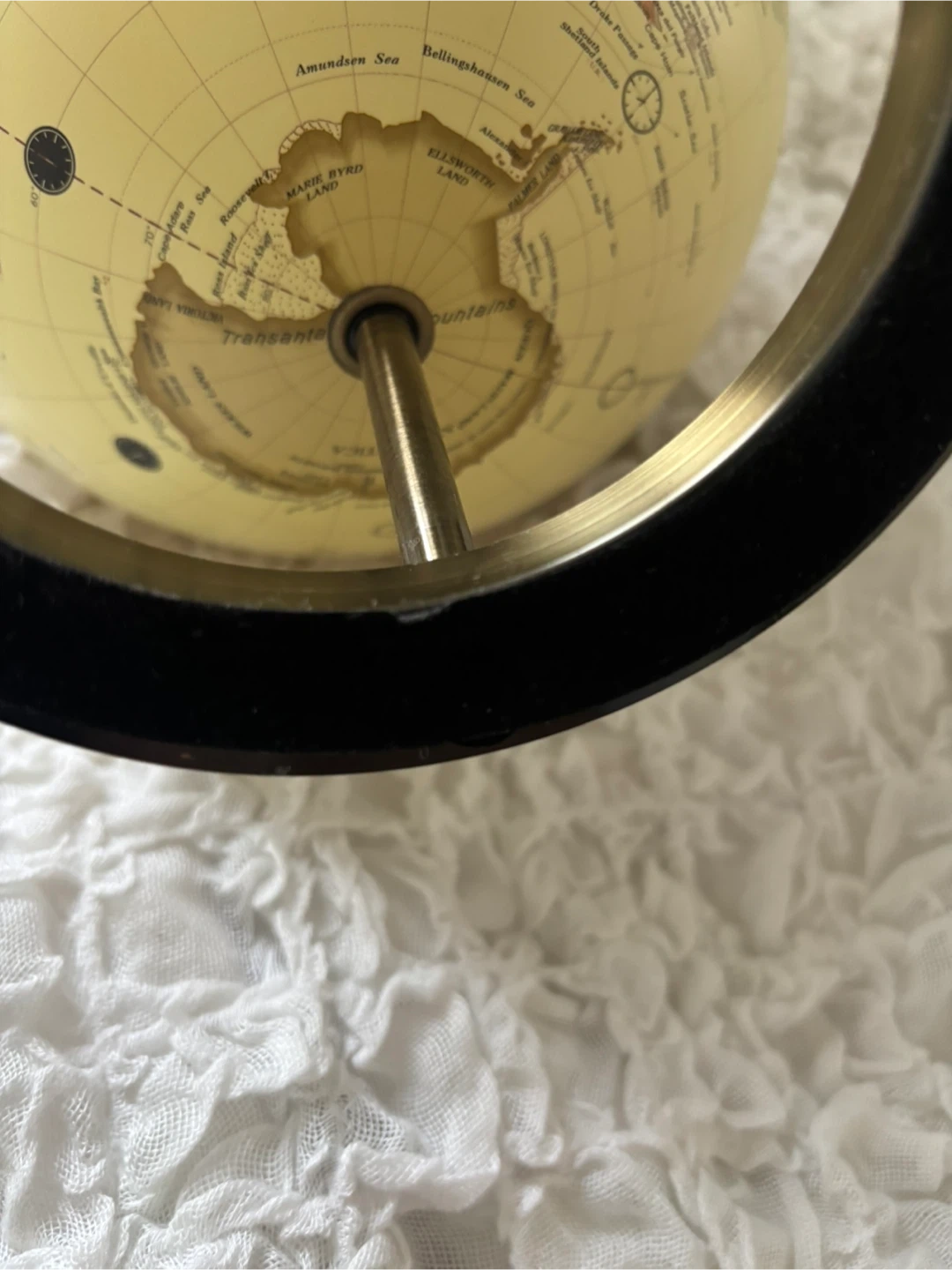 アクトワークスのアンティーク調インテリア地球儀(Mサイズ)です。 使用感少なめの美品です。 赤道・緯度経度に加え、フレーム上部には時差表示のダイヤルがついているので 時差を簡単に調べられます。 国名・国境線にとどまらず、主要都市や地名など 細やかに記されています。 英語表記 球径20cm(台座のサイズは画像でご確認下さい) 高さ28cm 時差ダイヤル付き 箱あり(畳んで保管していたためダメージあり) 台座裏の保護フェルト部分に若干の捲れあり(画像あり)。