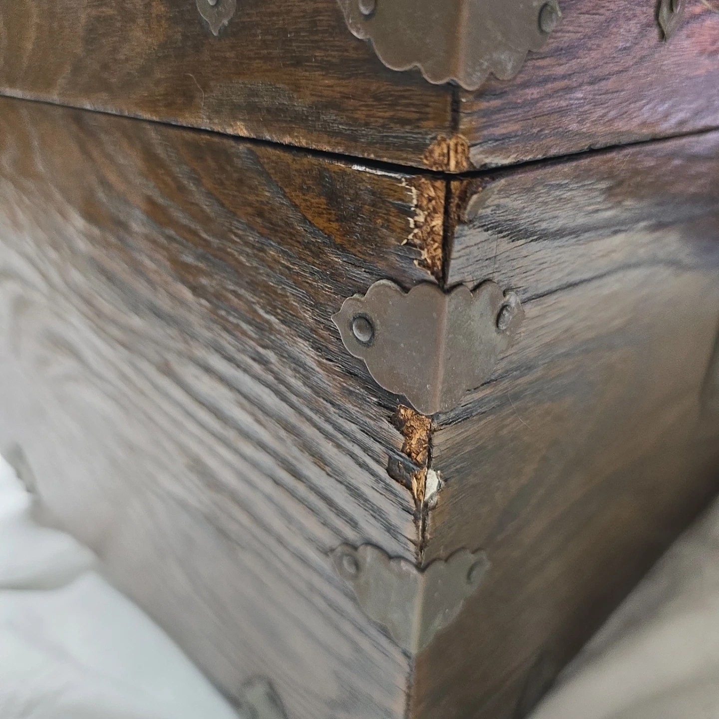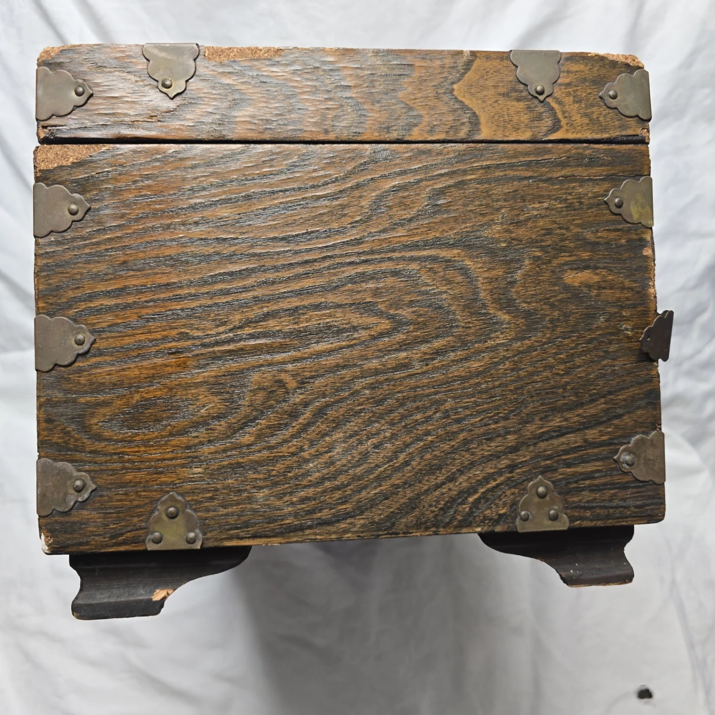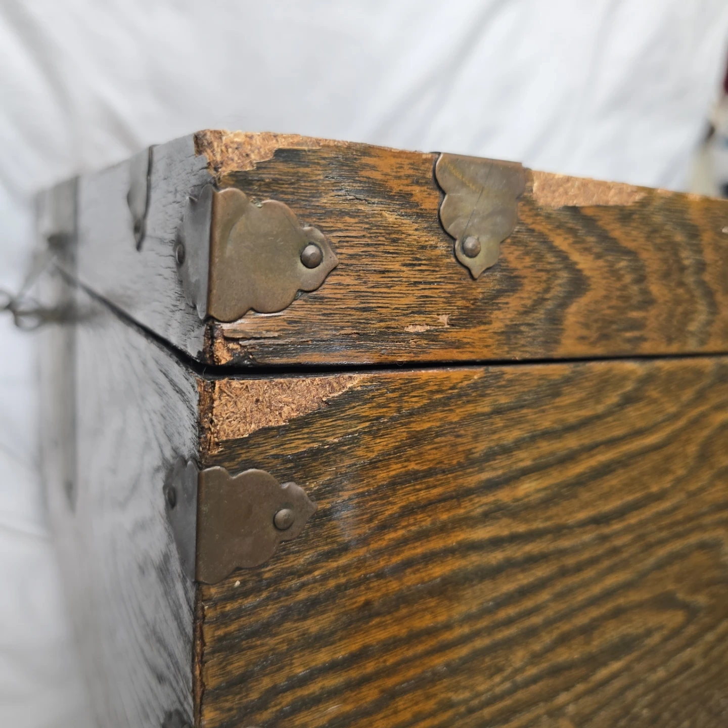 アンティークボックスです。 木製。 サイズはおよそ39.5×24×22cmです。 木の部分に痛みがあります。 金具の外れがあります。 中は汚れがありますが、破れはありません。 現状渡しにご理解いただける方、NCNRでお願いいたします。