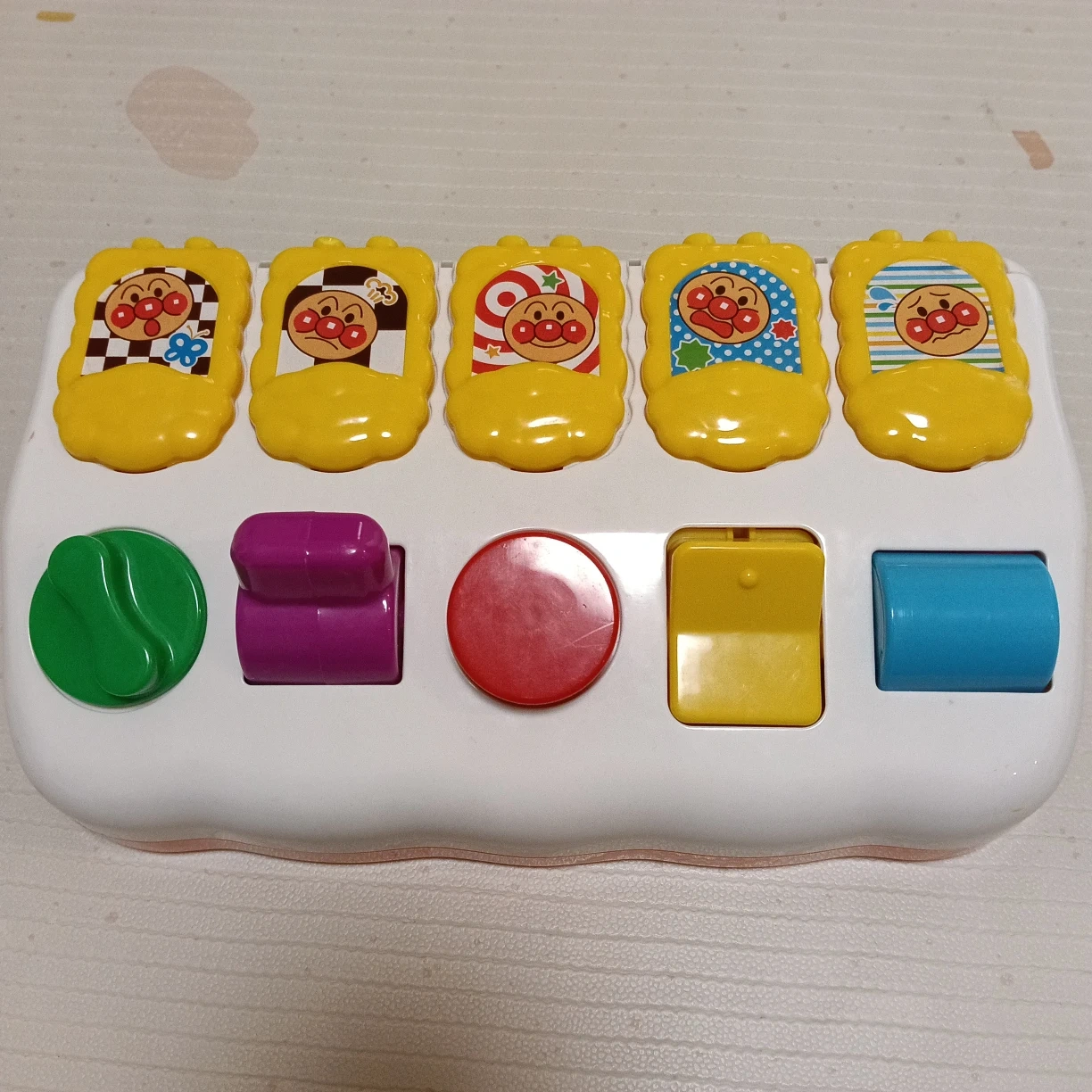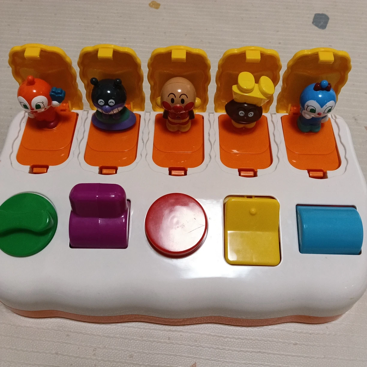 アンパンマンの飛び出すおもちゃです。 指先の力をつける知育玩具です。 いろいろなアクションでキャラクターが飛び出します。 アンパンマンの鼻など多少の擦れはありますが目立った汚れはありません。 写真でご確認ください。 ・キャラクターが飛び出す仕掛け付き ・多少の使用感あり 中古品であることをご了承ください。
