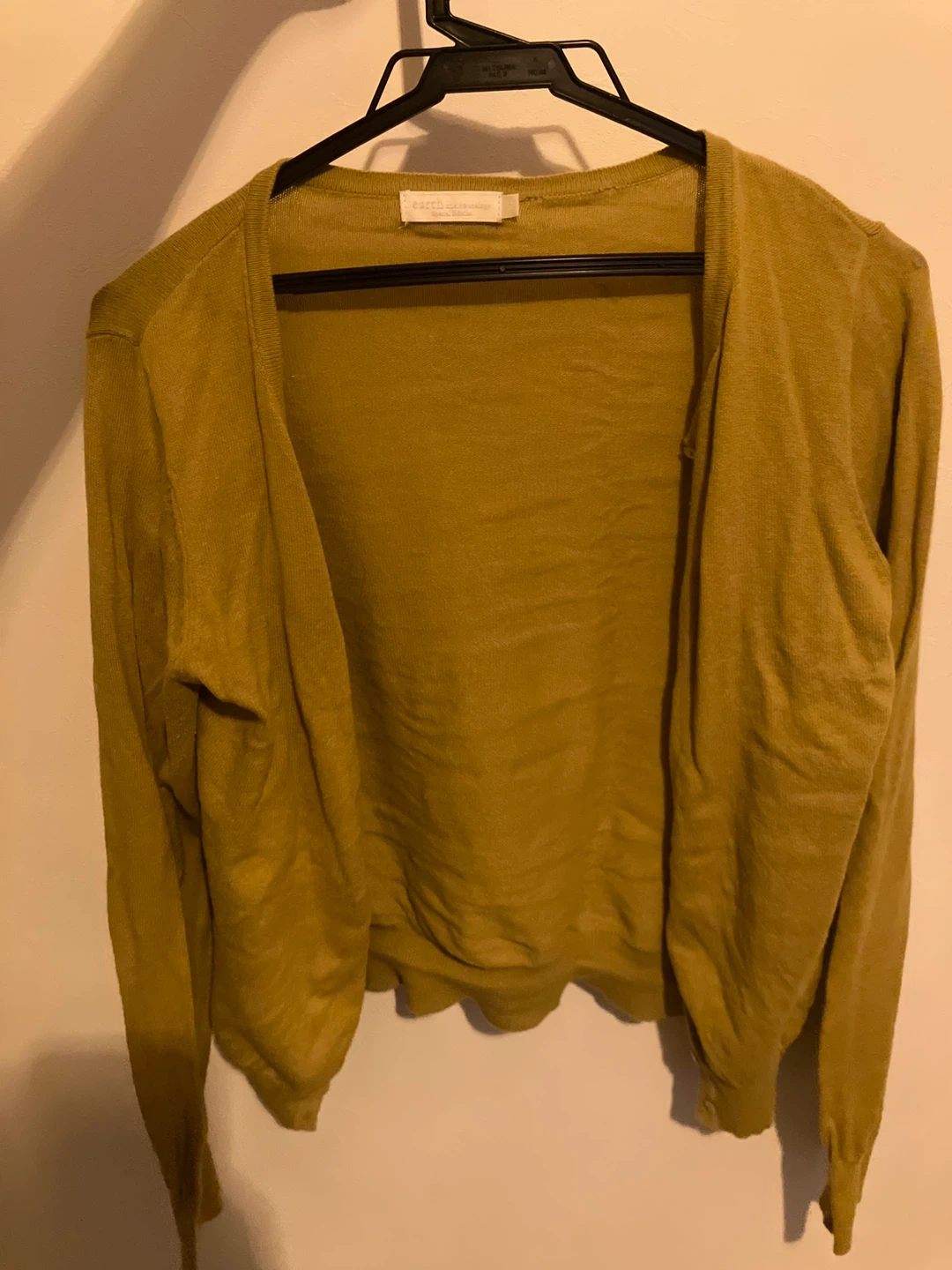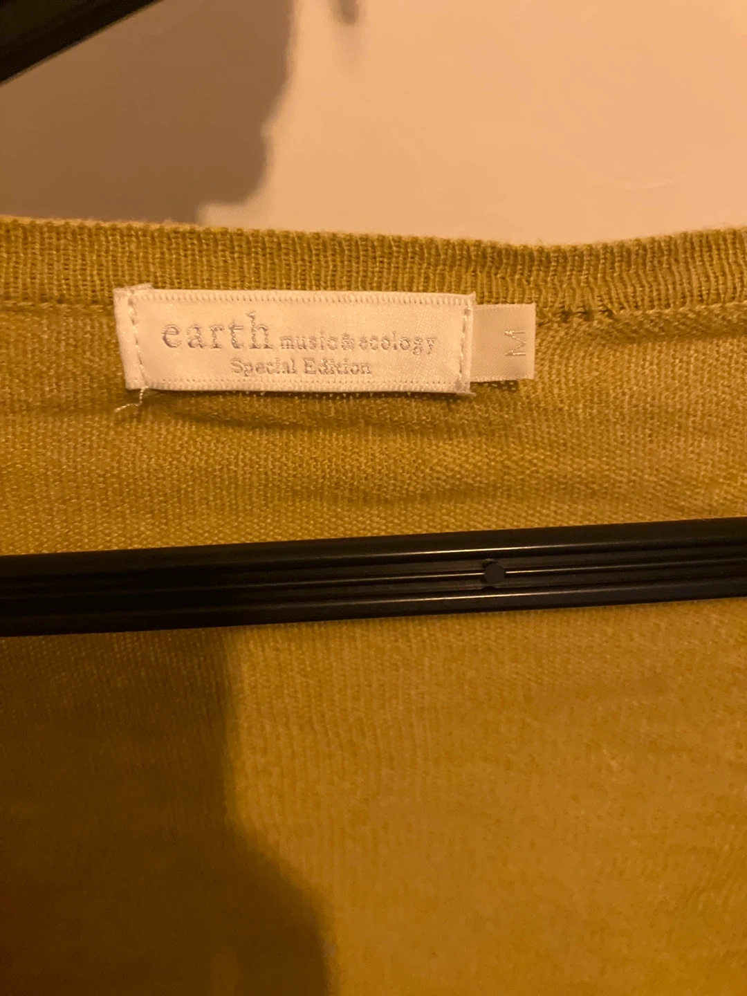 アースミュージックアンドエコロジーの カーディガンです。 Lの方でも着られると思います ・ブランド:アースミュージックアンドエコロジー ・サイズ:M ・色:マスタードイエロー ・使用感あり 中古品であることご了承ください