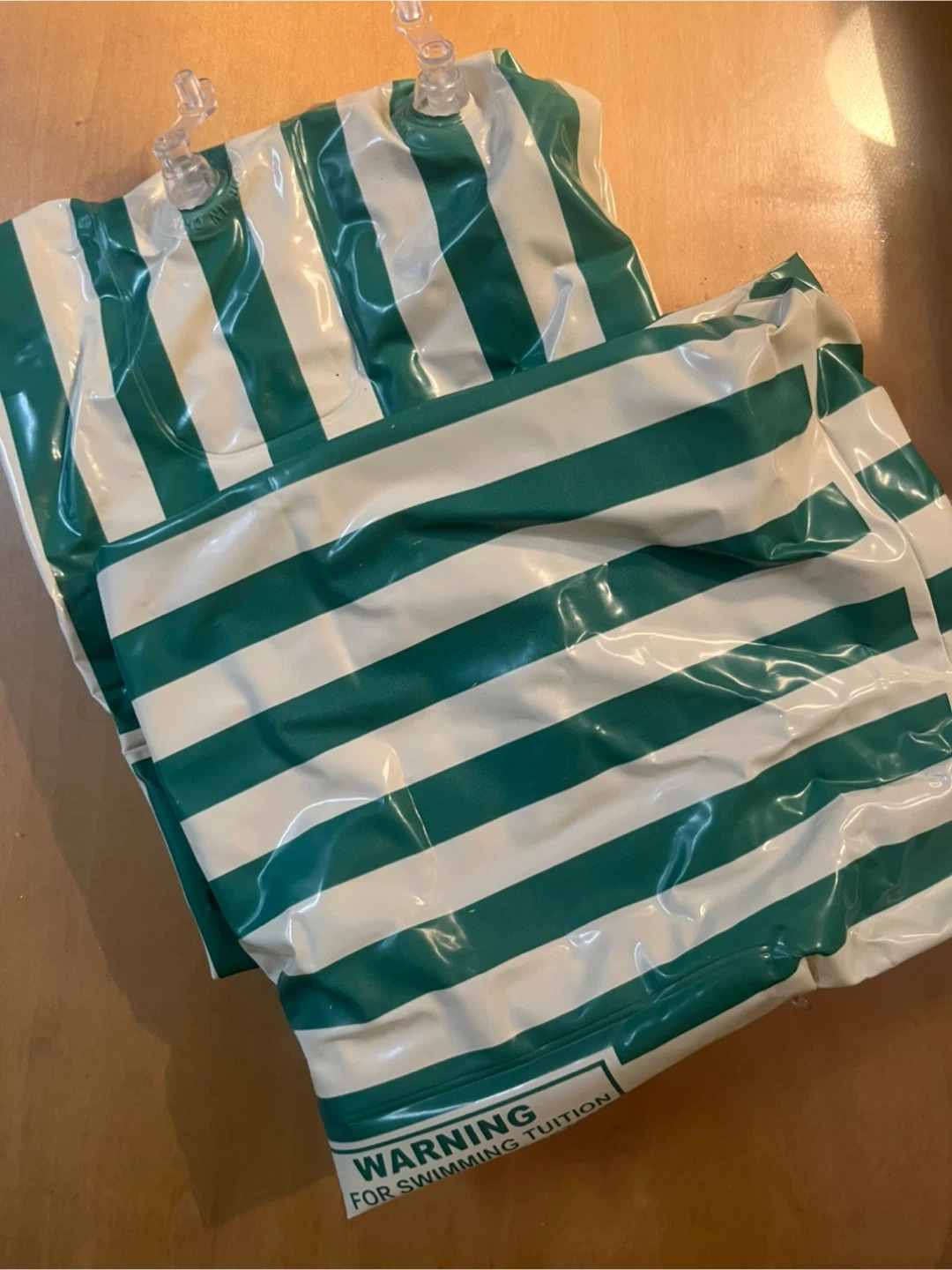 アームリングの浮き輪です ・色:緑と白のストライプ 中古品であることをご理解いただける方のみお取引をお願いします。 ほか出品している品物をまとめて購入いただける方を優先させていただきます🙇 プロフィールをご一読のうえ、ご希望の日程をお知らせください