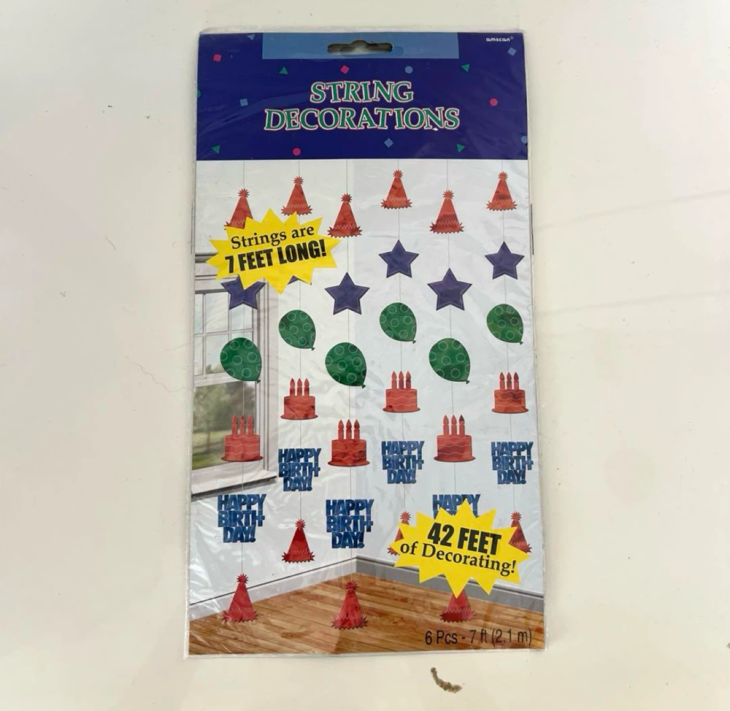 【人気】誕生日パーティー用ストリング装飾 6個入り アムスキャンのストリングデコレーションです ・6ピース(2.1m) ・ストリングの長さ:7フィート ・デコレーションの長さ:42フィート 中古品であることご了承ください