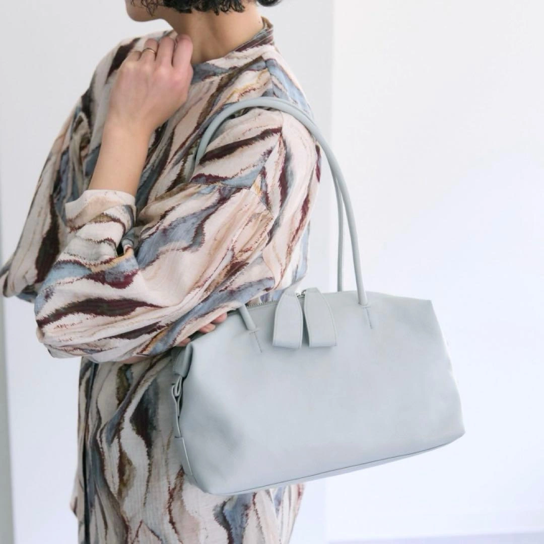 ear PAPILLONNER(イア パピヨネ)のロングハンドルボストンバッグ、ライトブルーです。 1度のみ使用して、その後自宅保管していました。 大人気の型の完売品の新色カラーです。 ツヤのあるゴートレザー(山羊革)を使用したボストンバッグです。 SNSでも人気のロング ハンドルで、トレンドをおさえた注目のデザイン。 軽くて柔らかいレザーを使用しているので体に馴染みやすく、バッグの重さが気になる方や荷物が多い方にもおすすめです。 余計なパーツは削ぎ落とし、洗練されたフォルムに映える大胆な引き手パーツと高級感のある上品な見た目で、日常使いはもちろんセレモニーなどのオケージョンシーンにも活躍するアイテムです。 ■仕様 ・開口部はファスナー仕様 ・外側差しポケット×1(マグネット付き)、内側ファスナーポケット×1、差しポケット×1 サイズ: 持ち手:58cm高さ:18cm幅:29.5cm マチ: 9cm 重さ:380g カラー···ライトブルー ご希望の方はお気軽にご連絡ください。