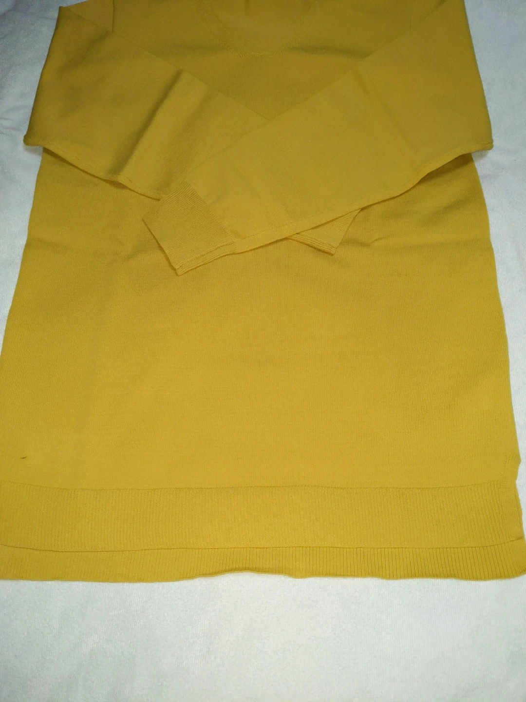 イエローのニットです。 ・色:イエロー ・サイズ:LL ・素材:ポリエステル100% 🟡洗えるタフな∨ネック・セーター(LL) ◉新品です ◉カラー:イエロー系(からし色) ◉サイズ:LL ◉バスト:93〜101センチ ◉身長:154〜162センチ ◉素材:ポリエステル100% ◉両サイド:スリットあり