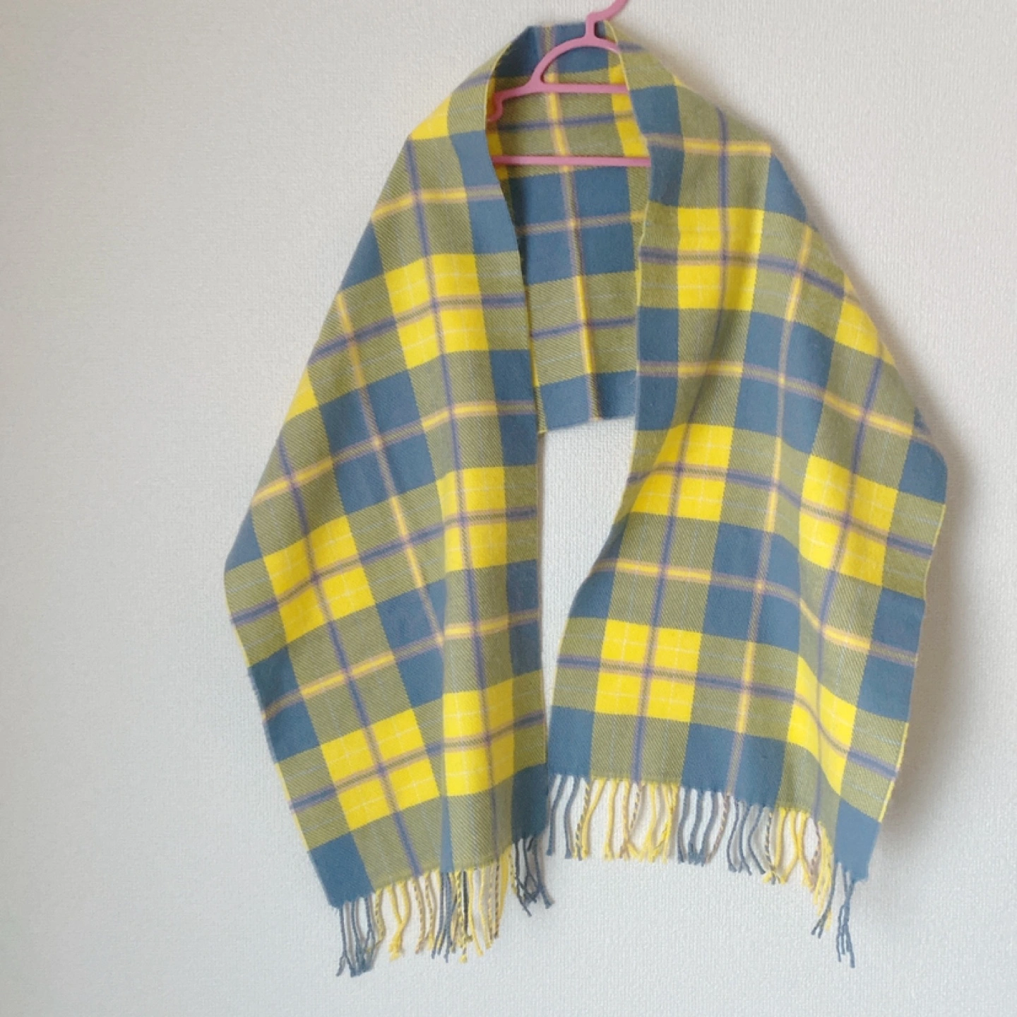 あたたかさ色味の可愛いチェック柄のマフラーになります。 ほとんど使用していないので綺麗です。 縁の部分が紫がかったピンクがアクセントになっていてとても素敵です。 幅: 約32cm 長さ: 約140cm(フリンジ部分含まず) 個人保管なので、 神経質な方はご確認の上、お願い致します☺︎ タバコは吸いません