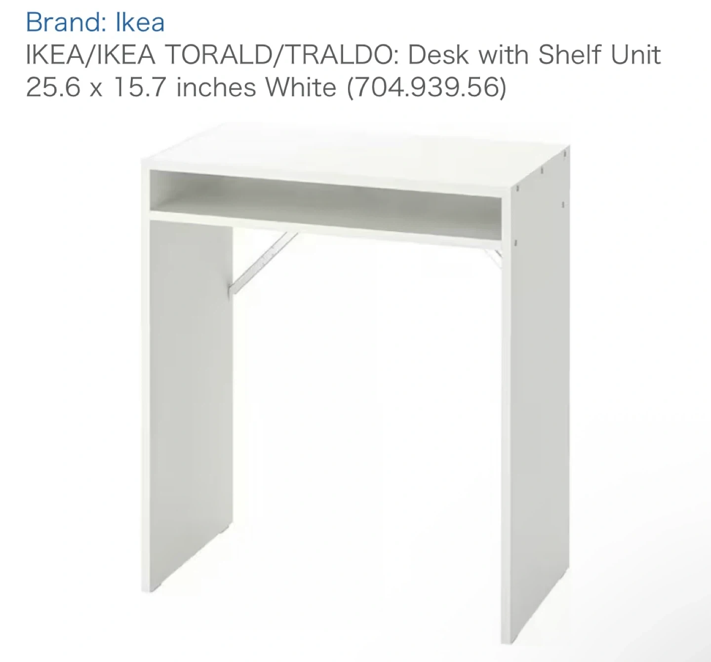 イケアのデスクです 【情報】 ブランド:イケア 商品名:TORALD/TRALDO 色:ホワイト サイズ:約65cm x 40cm x 75cm(幅x奥行x高さ) 【状態】 目立つキズや汚れは見当たりません 中古品であることご了承ください