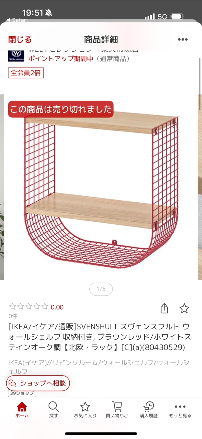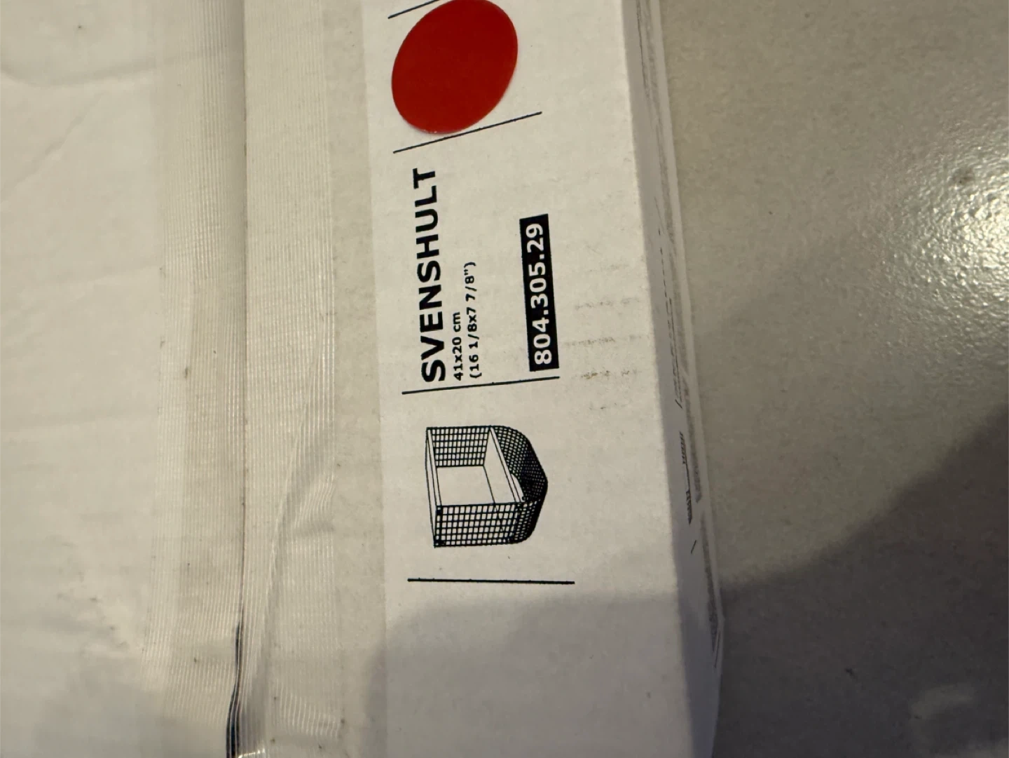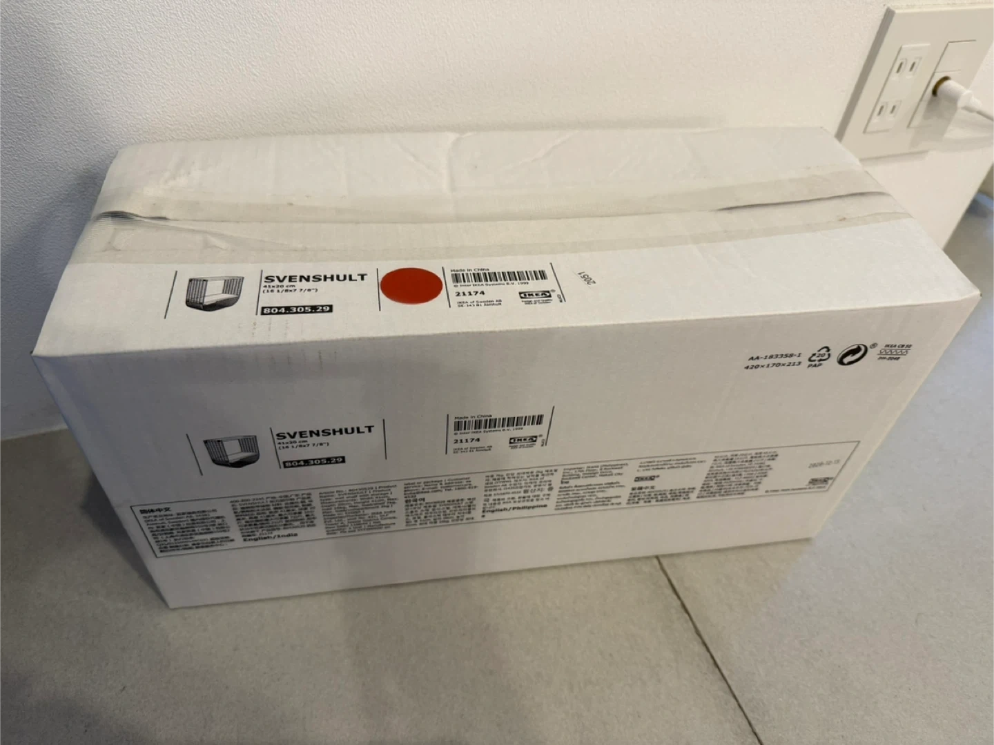 IKEA(イケア)のSVENSHULT(スヴェンスフルト)ウォールシェルフです。 鮮やかなレッドのワイヤーフレームに、ホワイトステインオーク調の棚板を組み合わせた北欧デザイン。 小物や植物、アクセサリーなどのディスプレイにぴったりです。 【商品名】SVENSHULT スヴェンスフルト 【型番】804.305.29 【サイズ】幅41×奥行20cm 【カラー】ブラウンレッド/ホワイトステインオーク調 【素材】スチール(粉体塗装)+棚板(パーティクルボード) 【状態】新品・未開封(外箱にわずかなスレあり) 【参考価格】7,098円(税込・送料無料/WEBY selection販売) 現在は廃盤の希少カラーです。 取付ネジは壁の材質に合わせて別途ご用意ください。 💰 • 定価:7,098円 • 廃盤品で入手困難