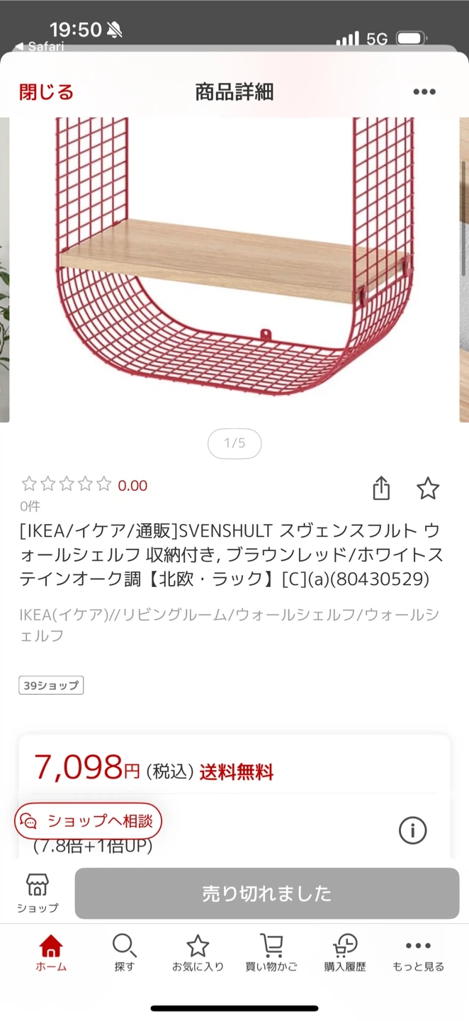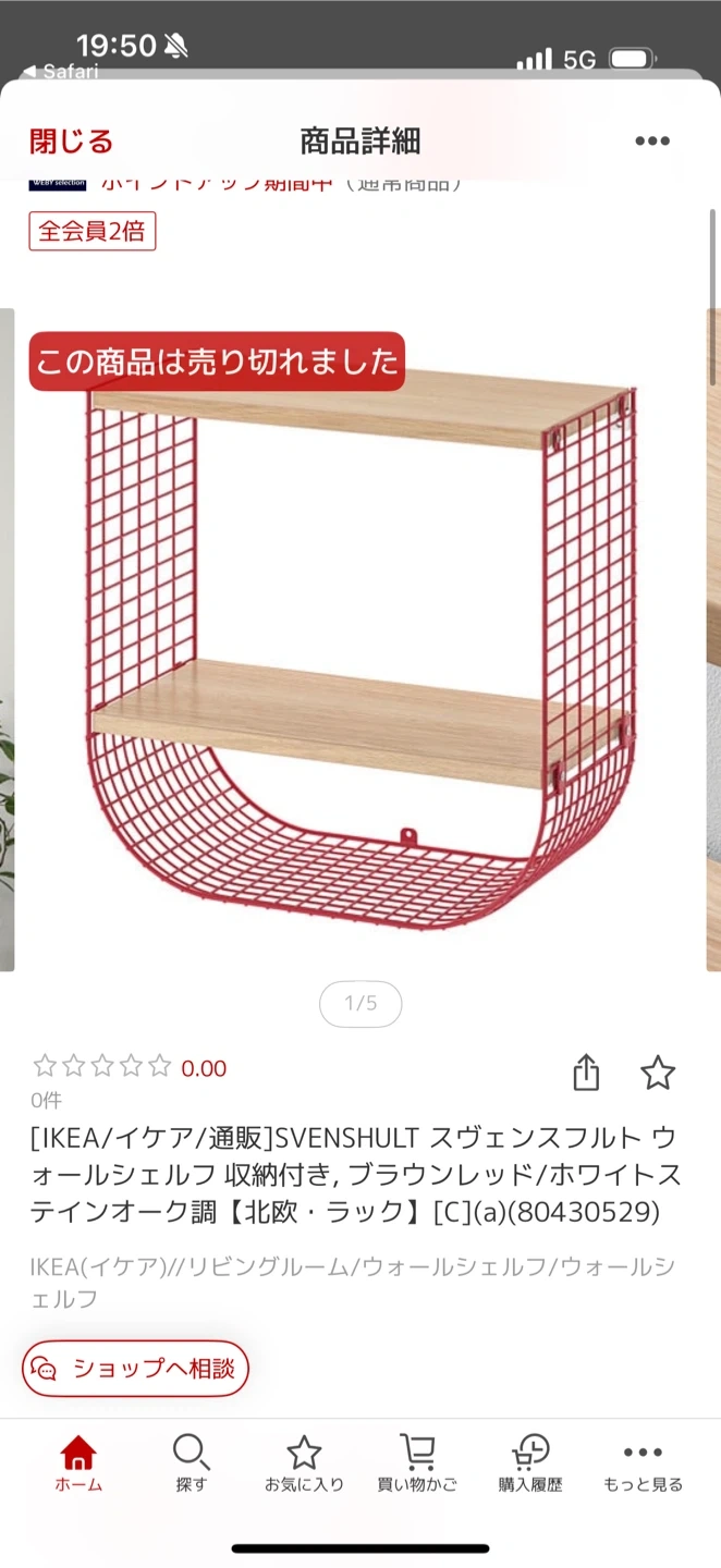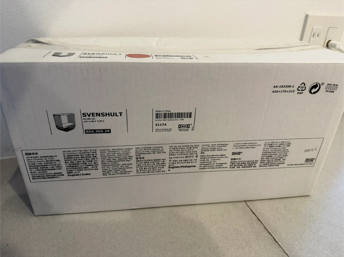 IKEA(イケア)のSVENSHULT(スヴェンスフルト)ウォールシェルフです。 鮮やかなレッドのワイヤーフレームに、ホワイトステインオーク調の棚板を組み合わせた北欧デザイン。 小物や植物、アクセサリーなどのディスプレイにぴったりです。 【商品名】SVENSHULT スヴェンスフルト 【型番】804.305.29 【サイズ】幅41×奥行20cm 【カラー】ブラウンレッド/ホワイトステインオーク調 【素材】スチール(粉体塗装)+棚板(パーティクルボード) 【状態】新品・未開封(外箱にわずかなスレあり) 【参考価格】7,098円(税込・送料無料/WEBY selection販売) 現在は廃盤の希少カラーです。 取付ネジは壁の材質に合わせて別途ご用意ください。 💰 • 定価:7,098円 • 廃盤品で入手困難