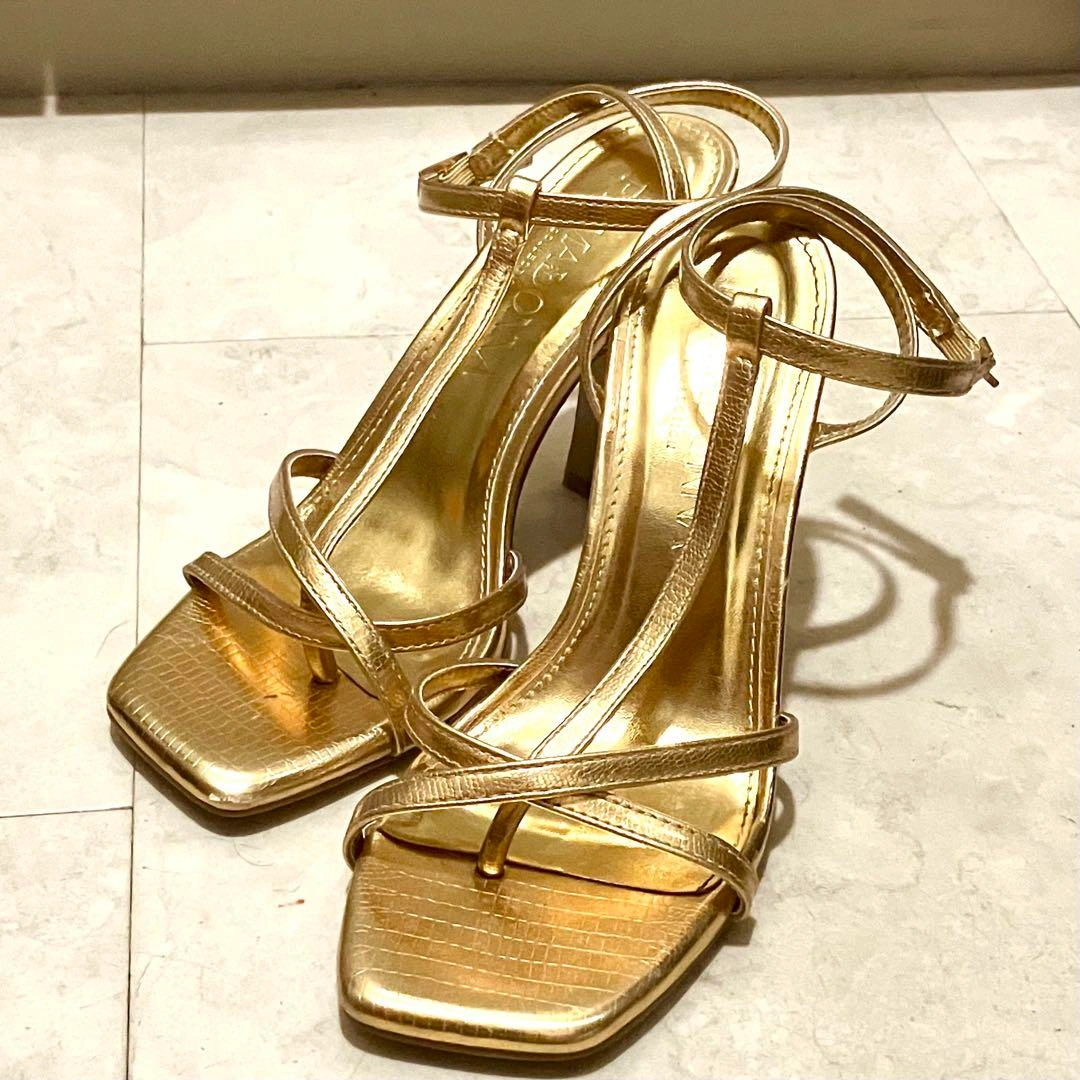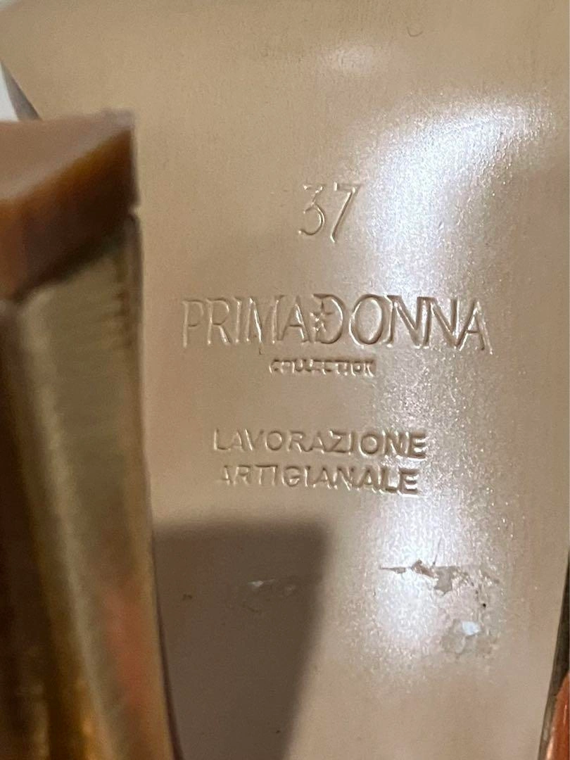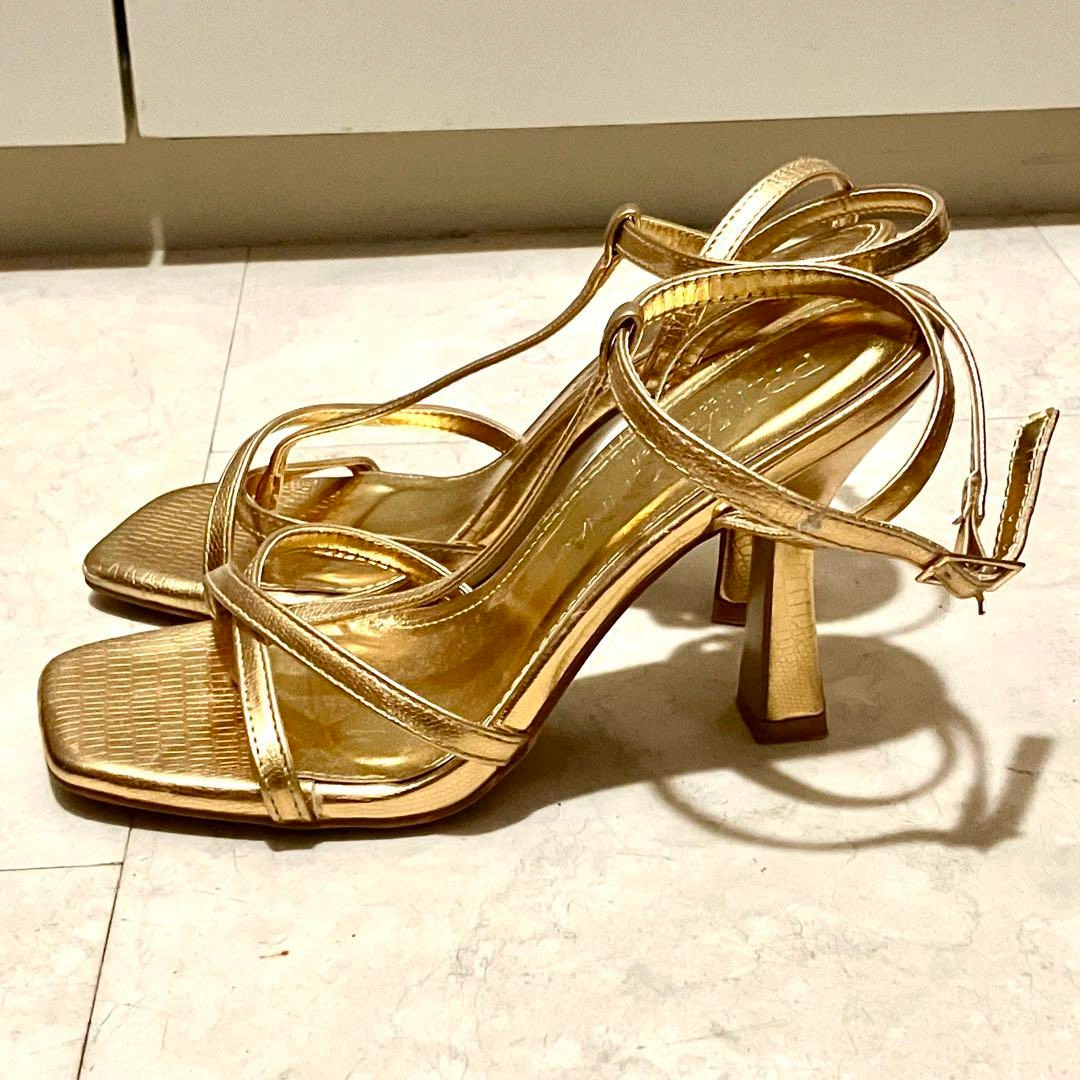 イタリアのPRIMADONNAで購入しました。 ダンス用に購入しましたが、1,2回の使用のみです。 ゴールドが輝くスタイリッシュなデザイン エレガントなストラップデザインが特徴です。特別なイベントやパーティーにぴったりの一足です。 約9cmのヒールは、スタイルを引き立て、脚を美しく見せる効果があります。 表記サイズ 37(ヨーロッパサイズ) 23.5cm (普段24cmの私ですが、丁度サイズでした) - ブランド: PRIMADONNA - 色: ゴールド - スタイル: ハイヒールサンダル - デザイン: ストラップ付き - 素材: 合成皮革 - ヒールの高さ: 約9cm 他にも出品しております。 複数ご購入はお値引きいたします。 宜しくお願いします ご希望の方はお気軽にご連絡ください。