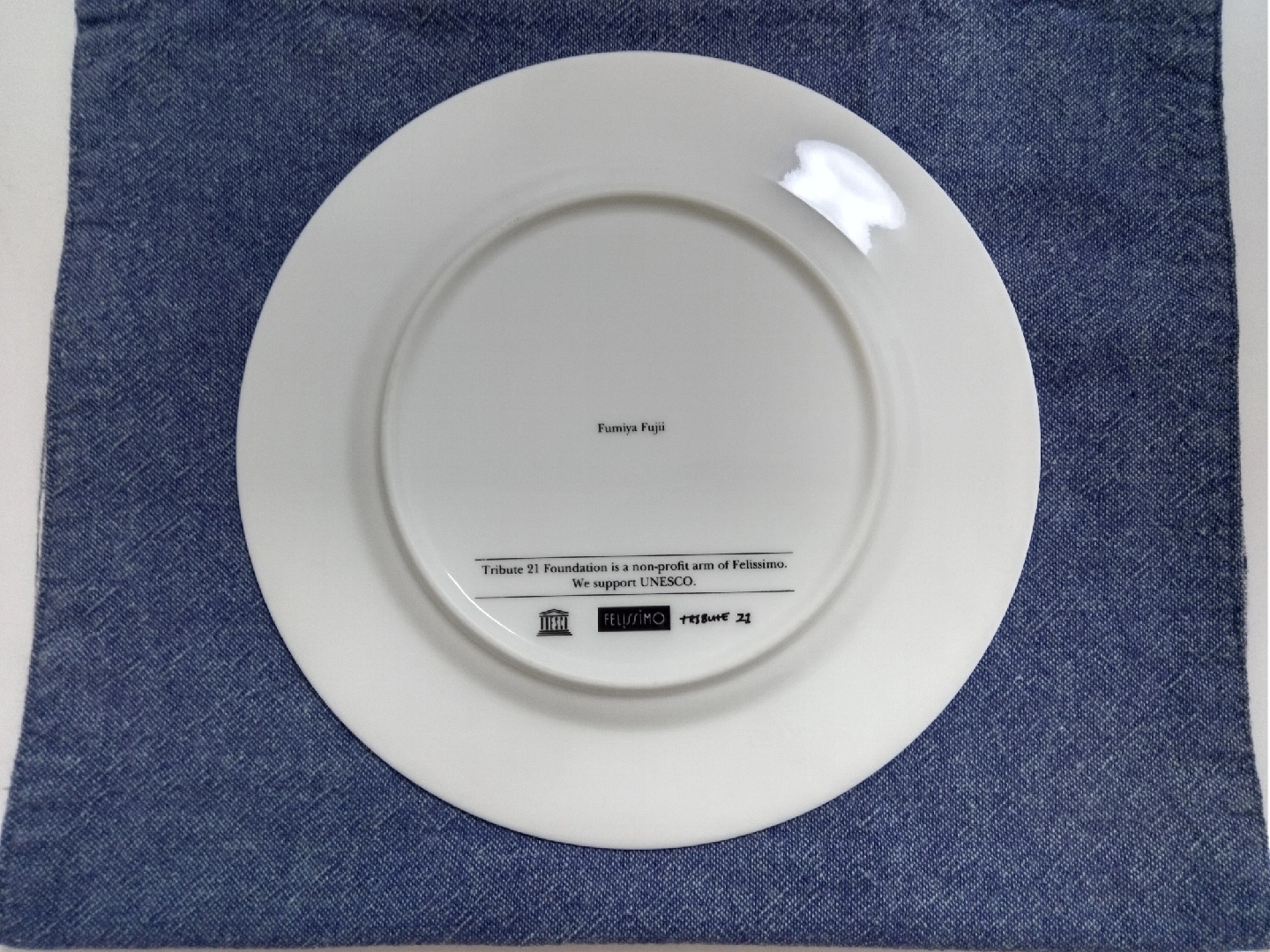 フェリシモの 藤井フミヤさん イラストデザイン柄のお皿です。 ・色:白 ・柄あり ・「Fumiya Fuji」の文字あり。 21 センチ 汚れはありませんが、 中央のプリントが かなりかすれています。 中古品であることご了承ください。
