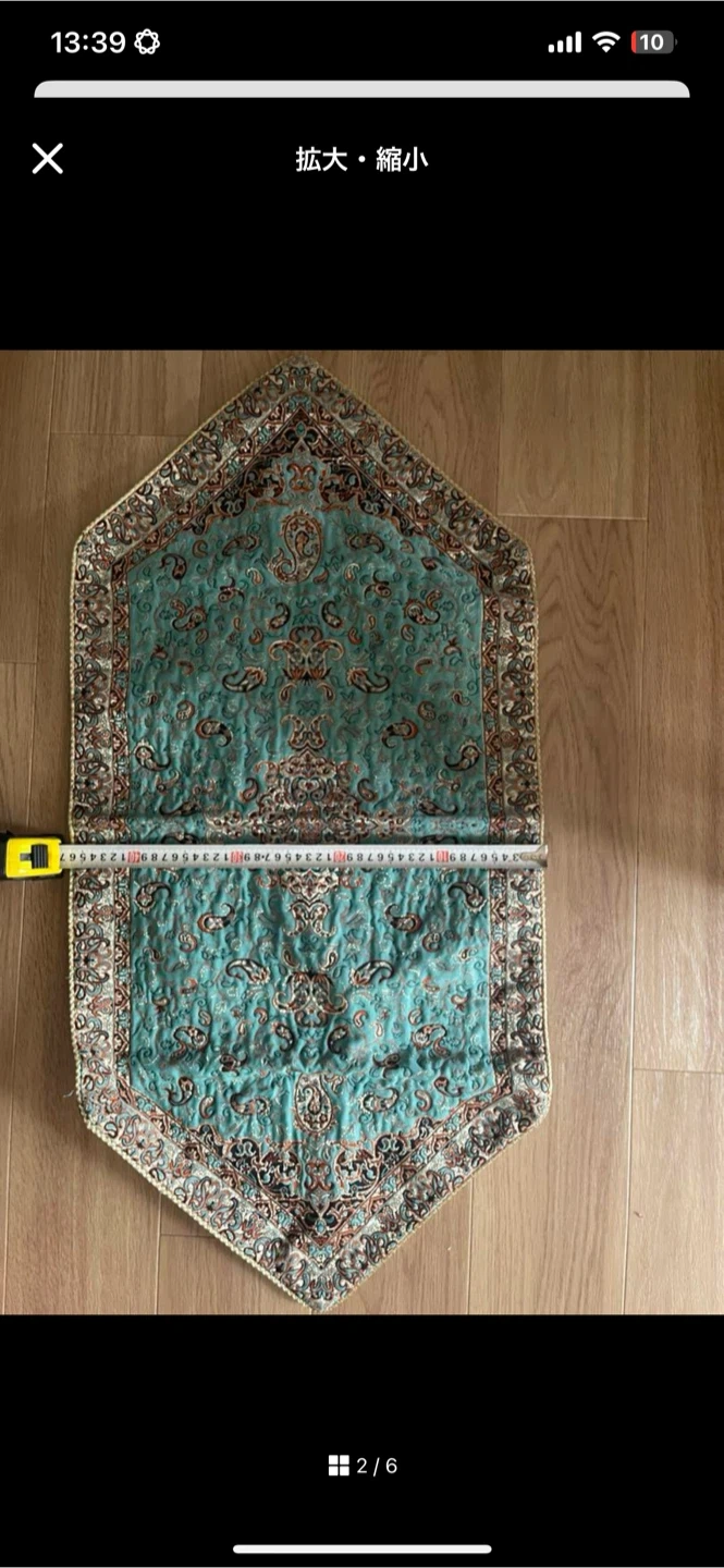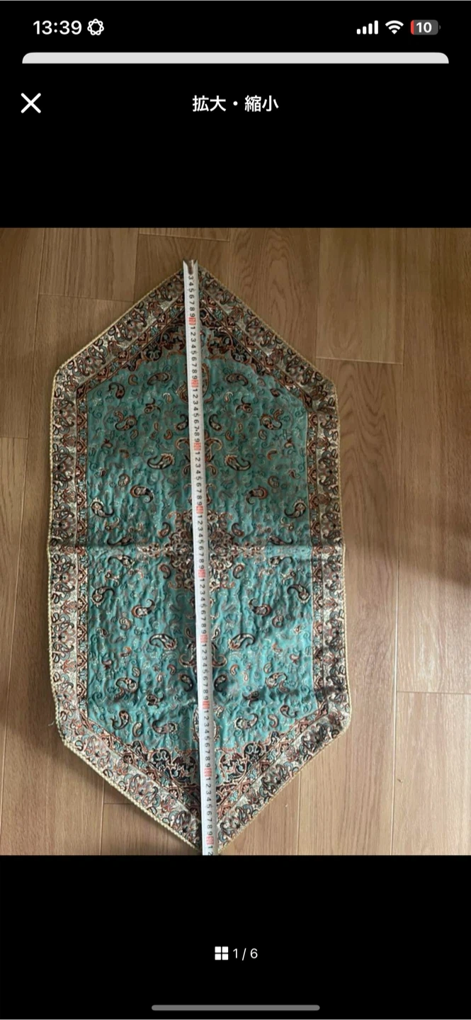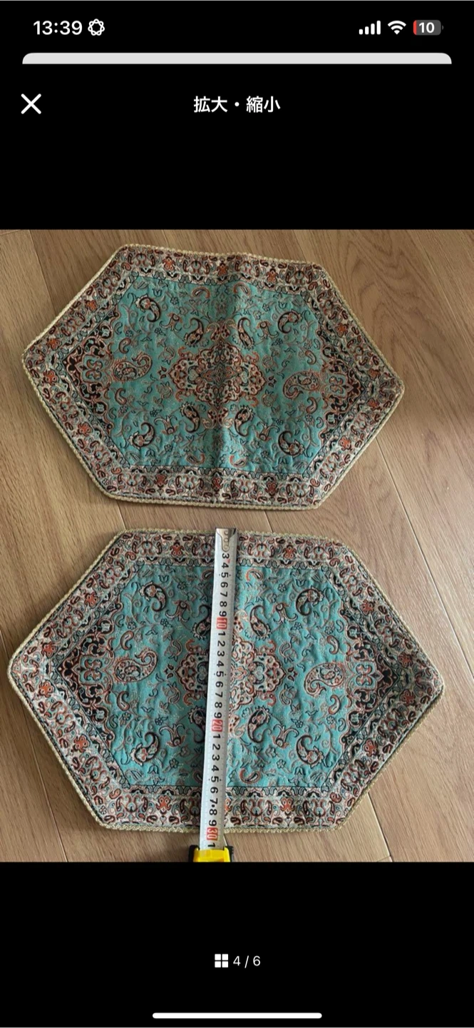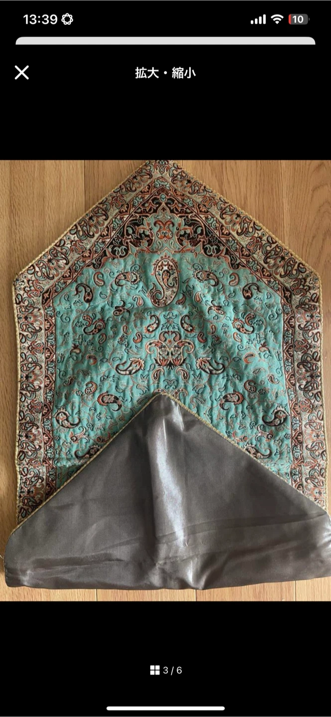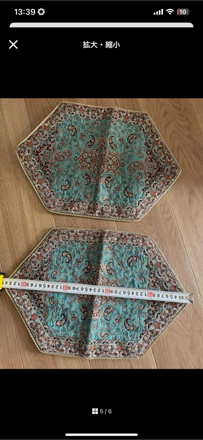 イランの伝統都市「ヤズド」で作られた、美しい手工芸織物「テルメ(Termeh)」の3点セットです。 鮮やかなターコイズブルーとグリーンを基調とし、クラシックなペイズリー(バテ・ジェガー)模様が織り込まれています。とても上品で、和室にも洋室にもぴったり合います。 状態: 新品・未使用(保管による折り目あり) 枚数: 3点セット(ランナーや小さな装飾用クロス) サイズ: 小〜中サイズ(正確な寸法は画像をご確認ください) 原産国: イラン・ヤズド 素材: 高品質ファブリック(詳細は画像をご参照ください) 海外の伝統工芸や、エスニックで個性的なインテリアが好きな方におすすめのアイテムです 新品・未使用品ですが、保管時の折り目や多少のシワがあります。 また、発送の際にさらにシワがつく可能性がございます。あらかじめご了承ください