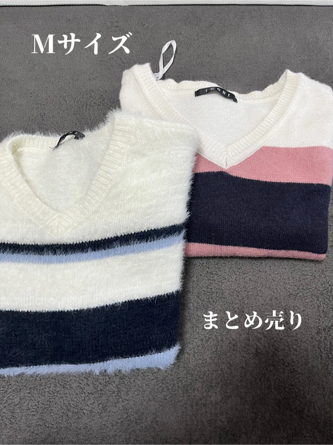 イングのニット2点セットです。 ・サイズ:M ・ブランド:イング ・カラー:ホワイト、ピンク、ネイビー、ブルー ・Vネック ・使用感は少なめです。 中古品であることをご了承ください。