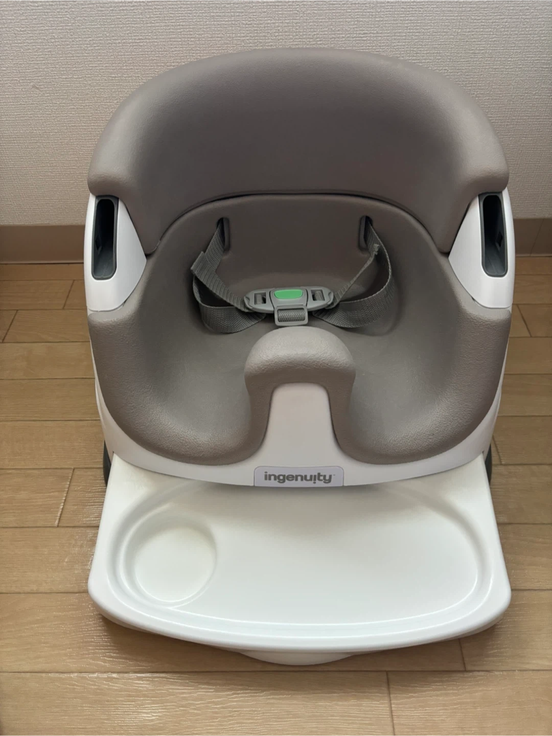 ご覧いただきありがとうございます! インジェニュイティのベビーチェアです。 リニューアル前のものになります。 使用期間は1年弱ほどです。 ・ブランド:インジェニュイティ ・付属品:説明書、ベルト ・状態:使用感と傷や汚れがあります。 写真5枚目…シール部分にシミのような汚れがあります。繰り返し使える粘着力あるシートが貼られていたものによる汚れになります。 写真6枚目…⭕️の部分が凹んでいます。等間隔にあり初期からか使用中に出来た傷かは不明です。 写真7枚目…上記と同じく凹み傷があります。 写真8枚目…全体的にゴム部分のスレ傷があります。 丸洗い後アルコールで消毒しておりますが、使用感があるため神経質な方はご遠慮下さい。 ご縁がありましたらどうぞよろしくお願いいたします。