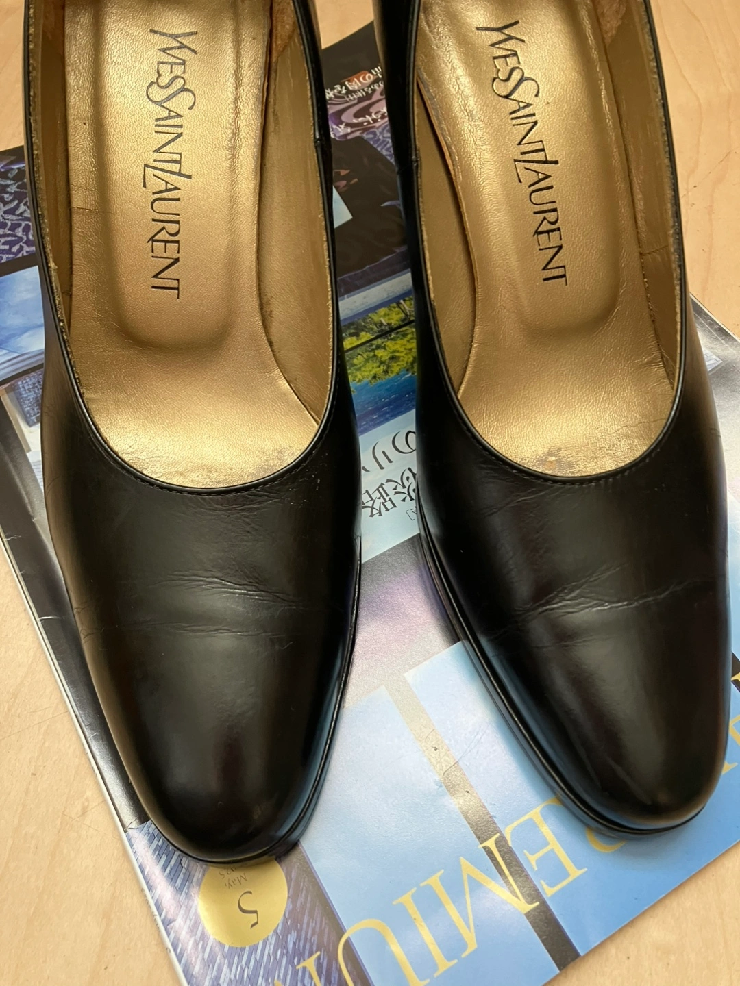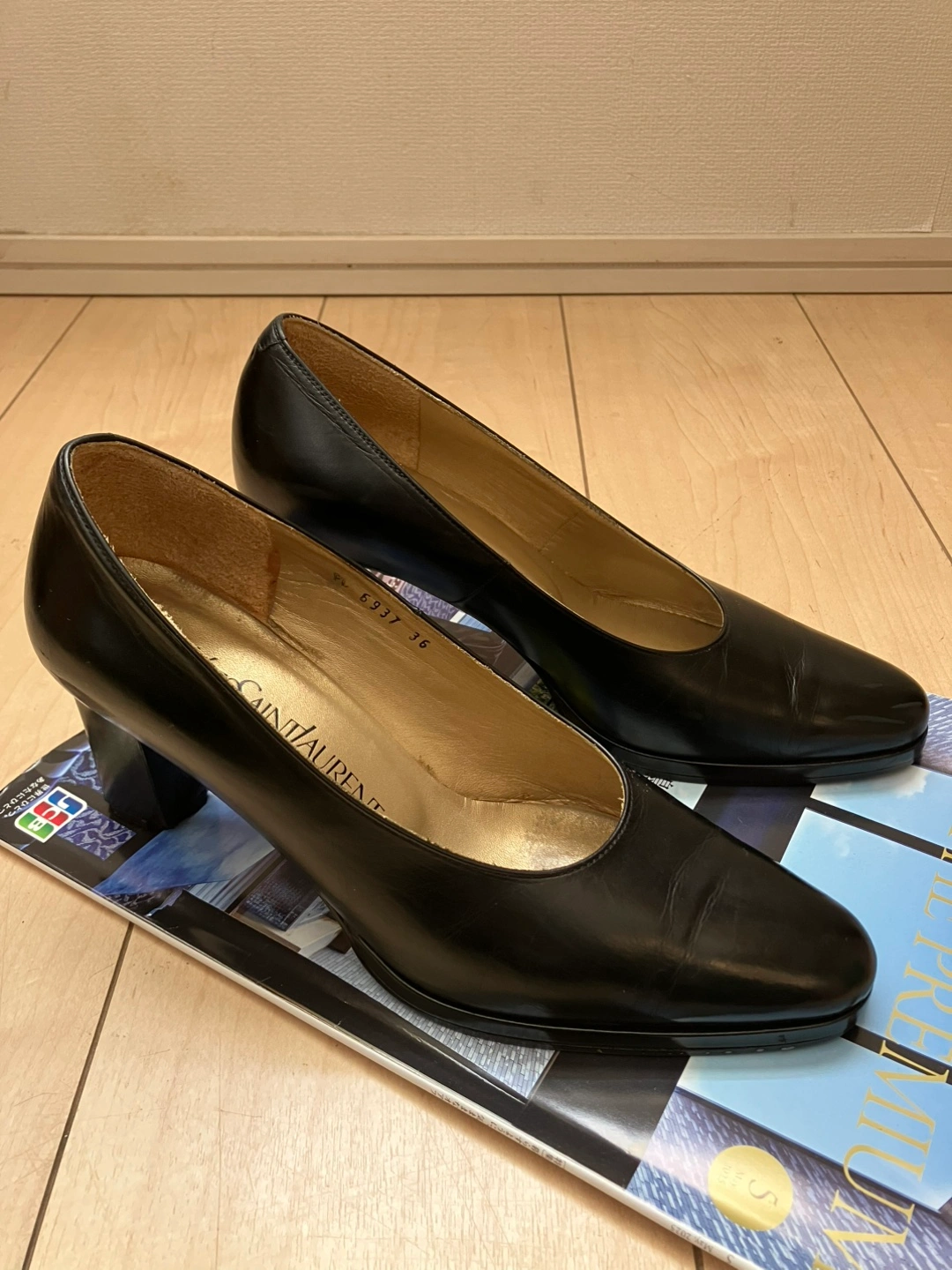 ・ブランド:イヴサンローラン ・種類:パンプス ・カラー:ブラック ・サイズ:36 ・使用感あり ヒールの底を修復すればまだまだ使用できます。 深みのあるブラックで冠婚葬祭にも気後れなく着用できます