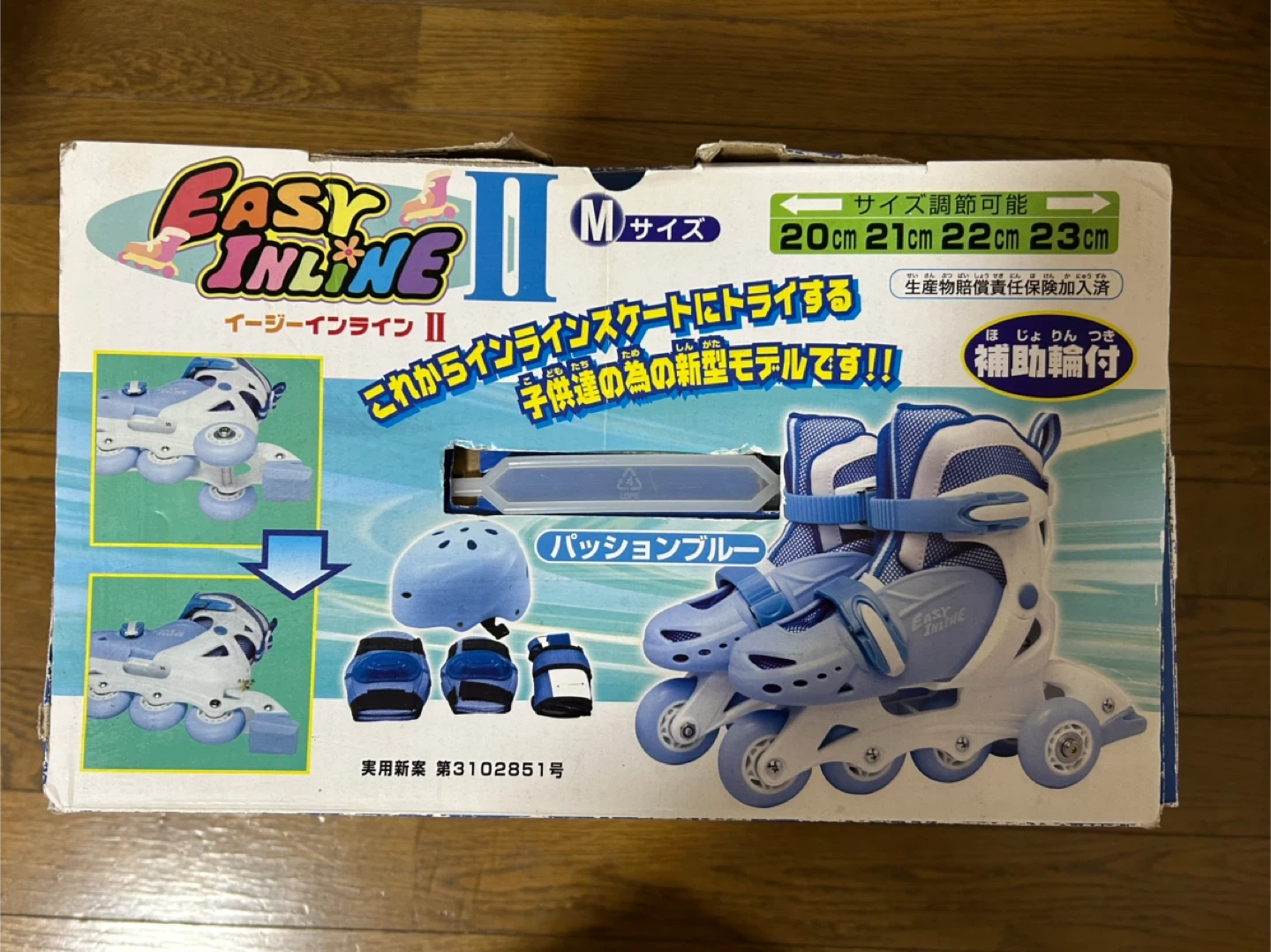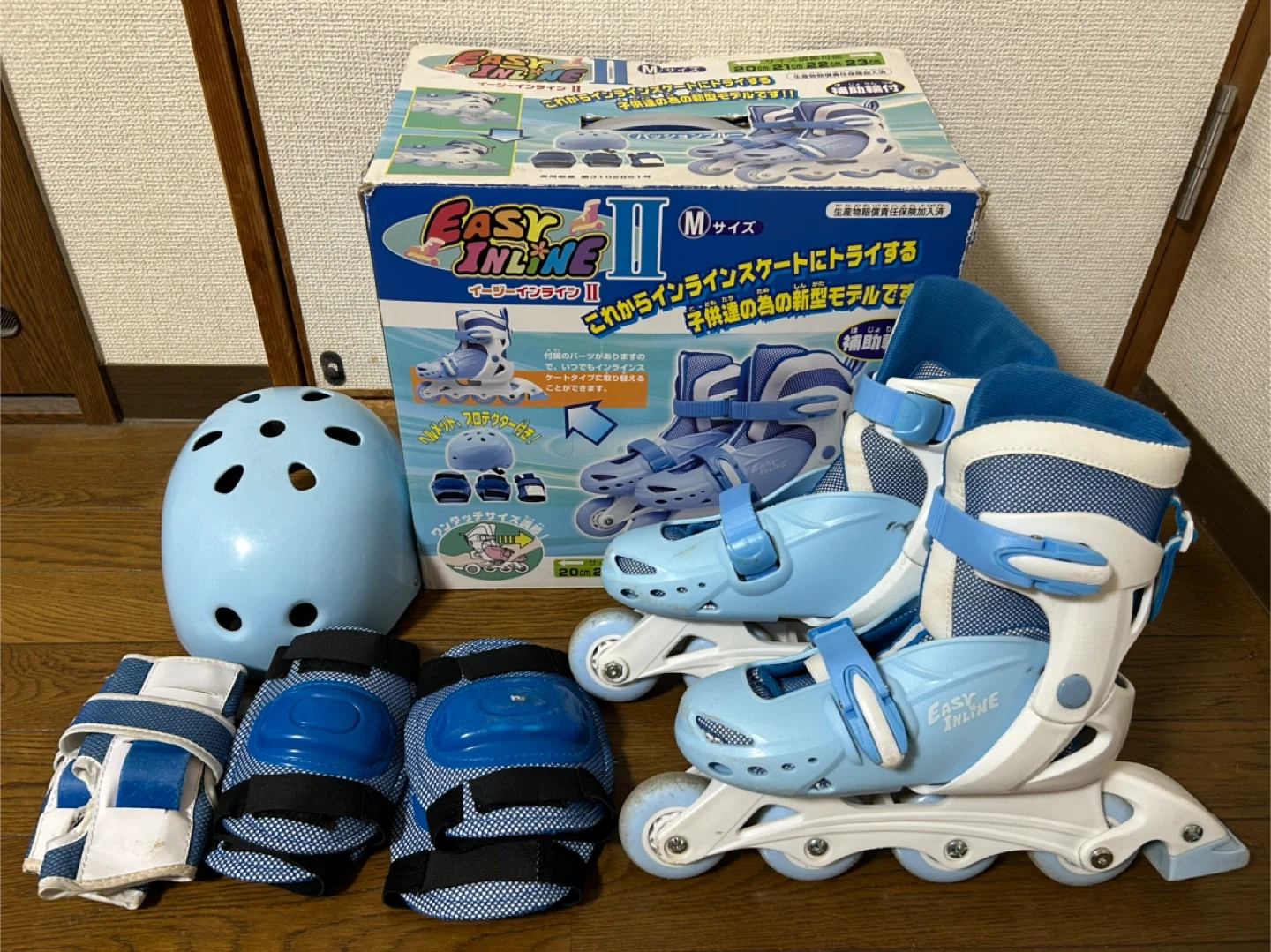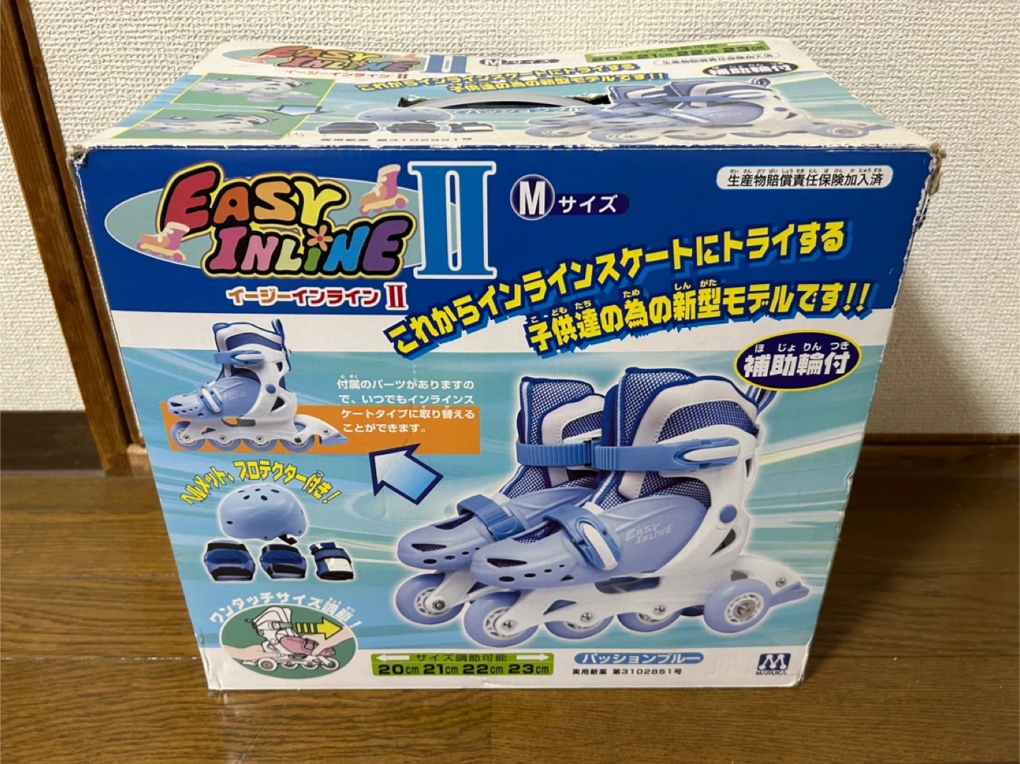 あたたかさイージーインラインのローラースケートMサ イズです。 ・サイズ:M(20〜23cm) ・付属品:箱、ヘルメット、プロテクター(手首、肘、膝) ・状態:使用感あり 補助輪もついてるので、初めてインラインスケートをするのに安心です。 中古品であることご了承ください。