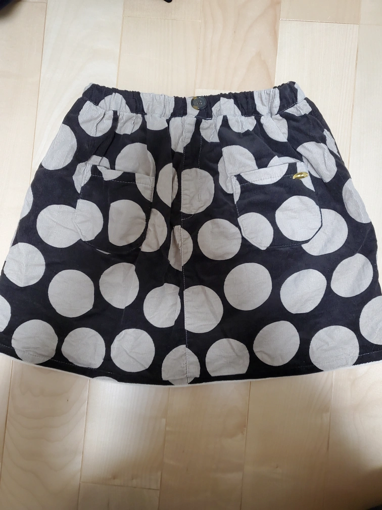 ウィルメリーのスカートです。 ・サイズ:140 ・素材:綿100%(裏地 ポリエステル92%、ポリウレタン8%) ・色:黒地に白のドット柄 ・ブランド:WILL MERY ・使用感:ほとんどなし パンツばかりで、こちらは着た覚えがありません。 裏側がホワホワしていて暖かいです。