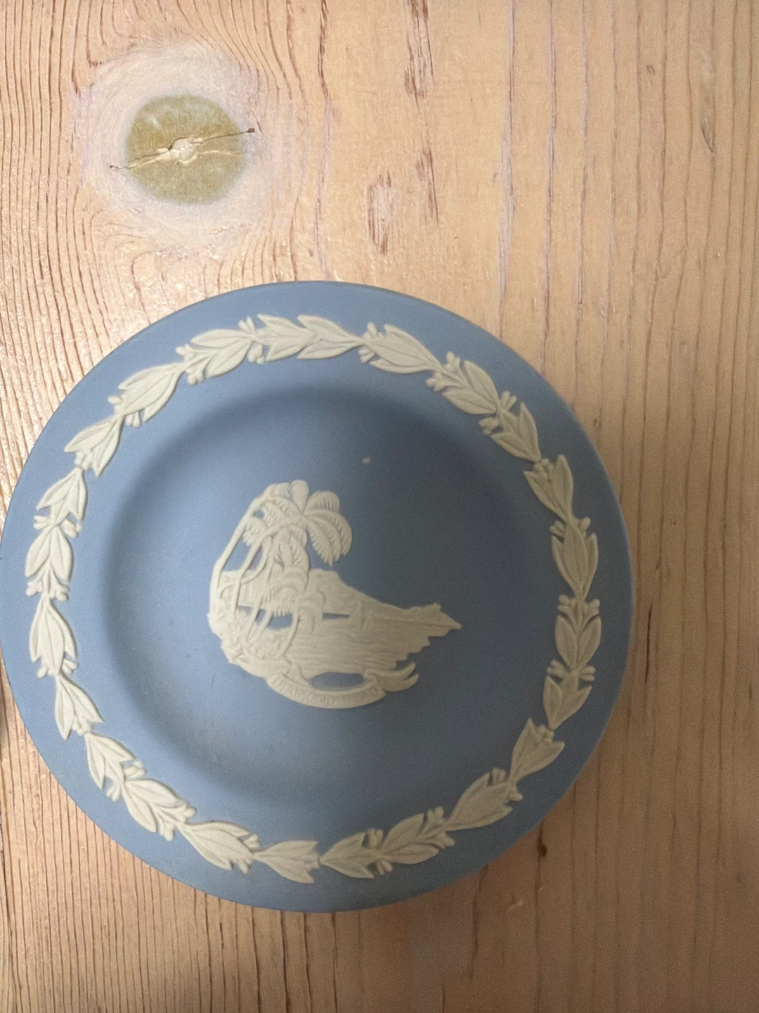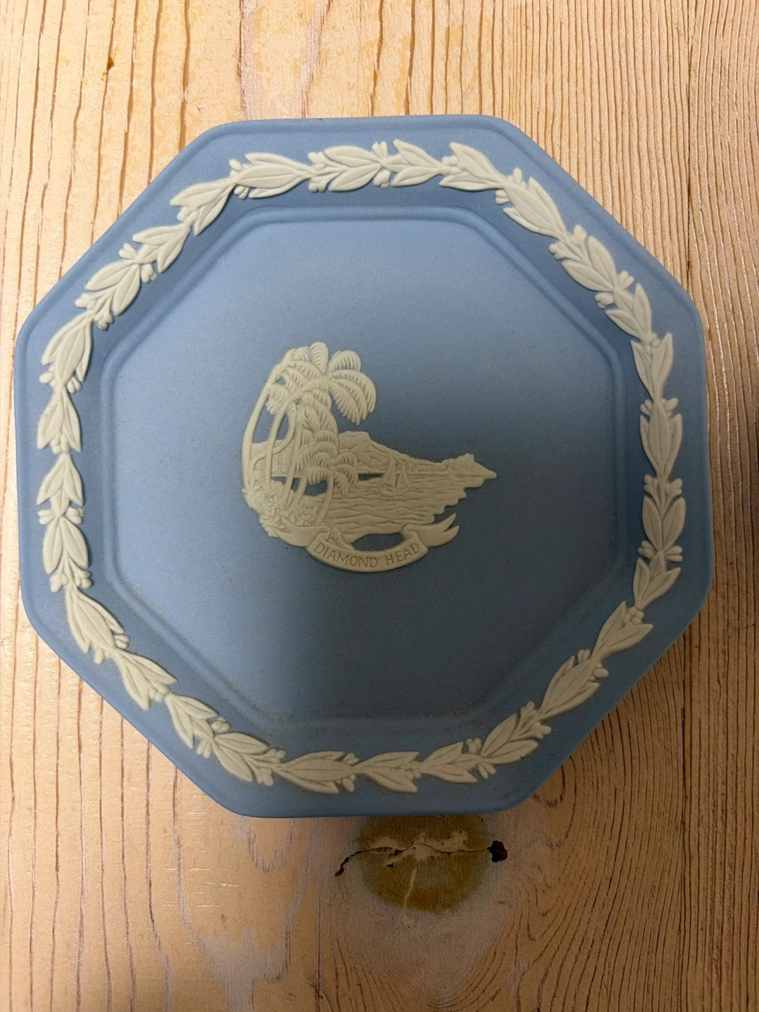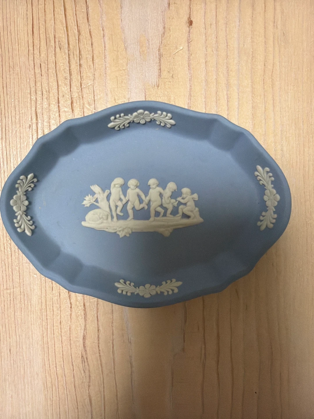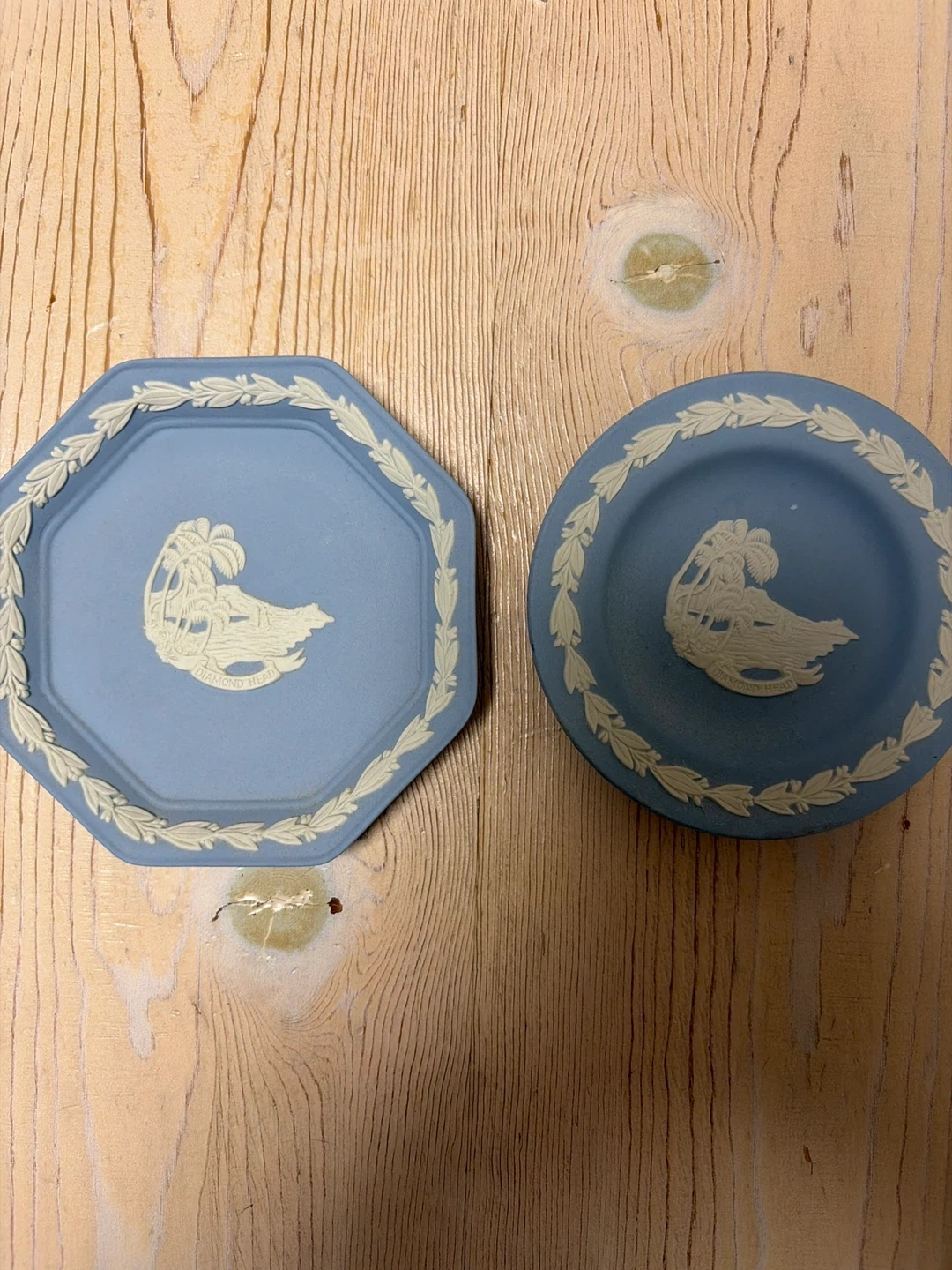ウェッジウッドの飾り皿2枚セットです。 ・ブルーの飾り皿 ・円形と八角形 •楕円形 (丸型直径12センチ八角型直径13センチ楕円8センチ✖️12センチ ・丸型と八角は ダイヤモンドヘッドのデザイン 中古品であることをご了承ください。