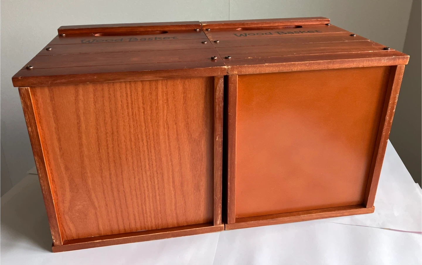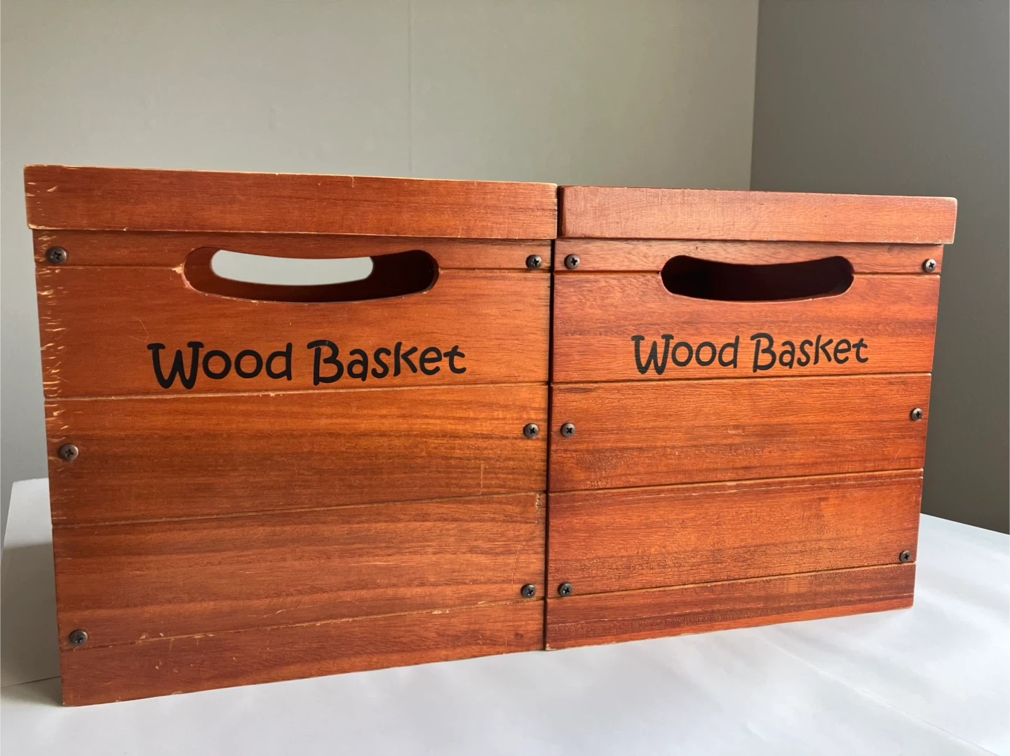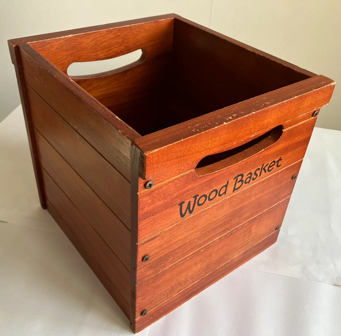 木製のバスケットです。 ・木製 ・「Wood Basket」の文字入り ・持ち手あり ・2個 【外寸】 幅 24cm × 奥行 27.5cm × 高さ 25cm 【内寸】 幅 21cm × 奥行23cm × 高さ24cm 傷がありますが壊れていないのでまだ使用できると思います 消毒済みです 受け渡し場所ご相談に応じます ご不明点があればお気軽にご連絡ください