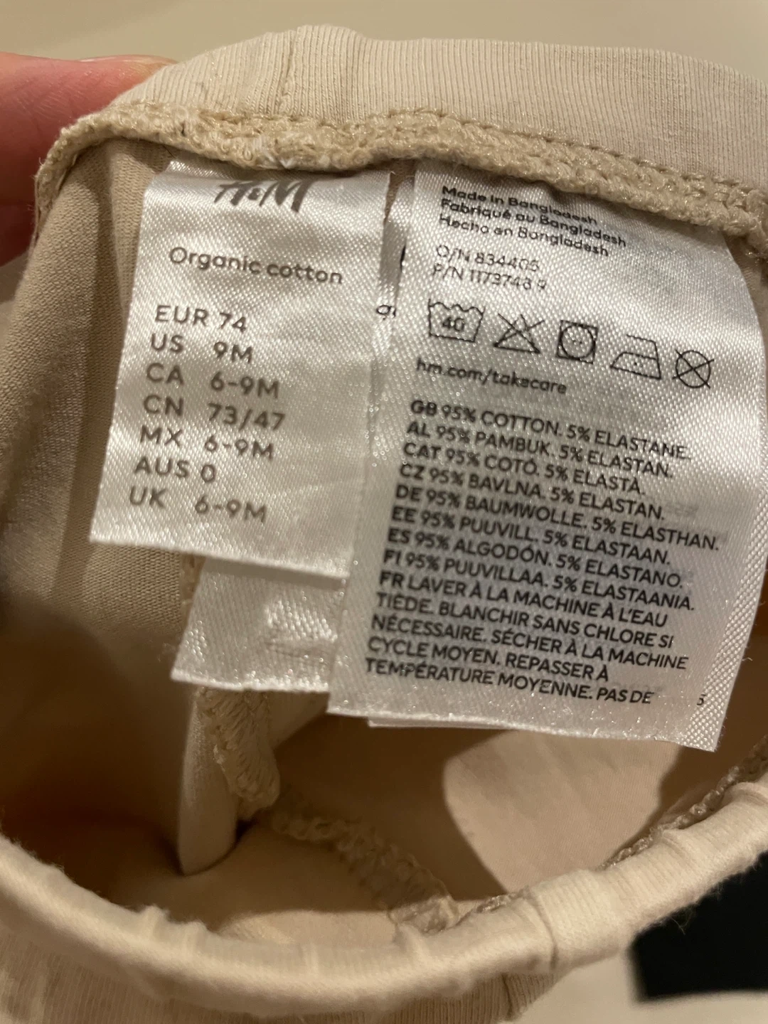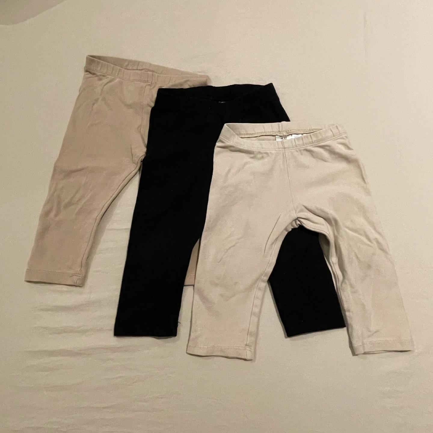 エイチアンドエムのベビーレギンス3本セットです ・サイズ:9M(6-9ヶ月)、74 ・カラー:ベージュ、ブラック、オフホワイト ・素材:オーガニックコットン95%、エラスタン5% ・汚れはなさそうですが、使用感あり 1番手前のベージュが少し縮んでいるように見えます。 中古品であることご了承ください
