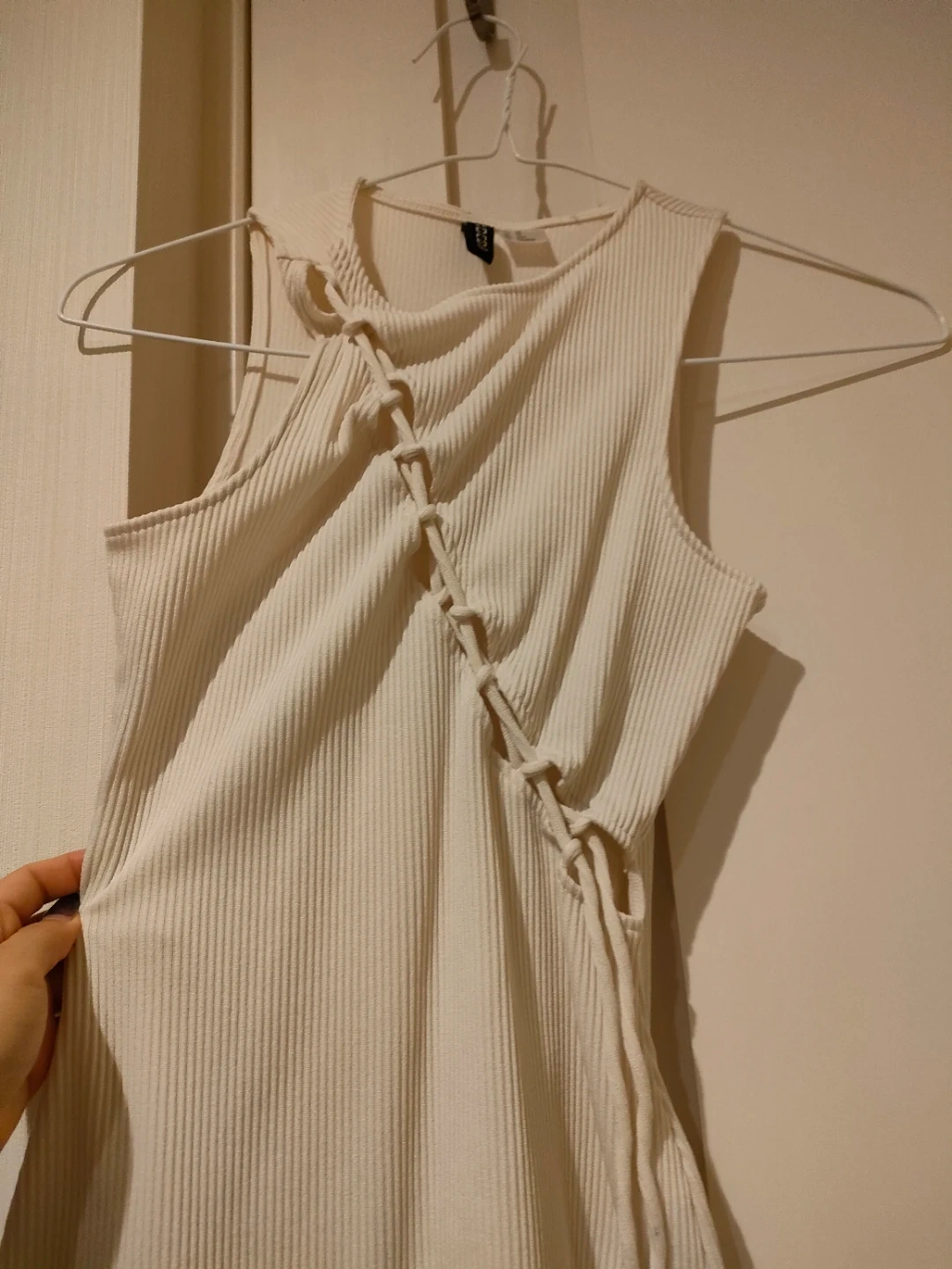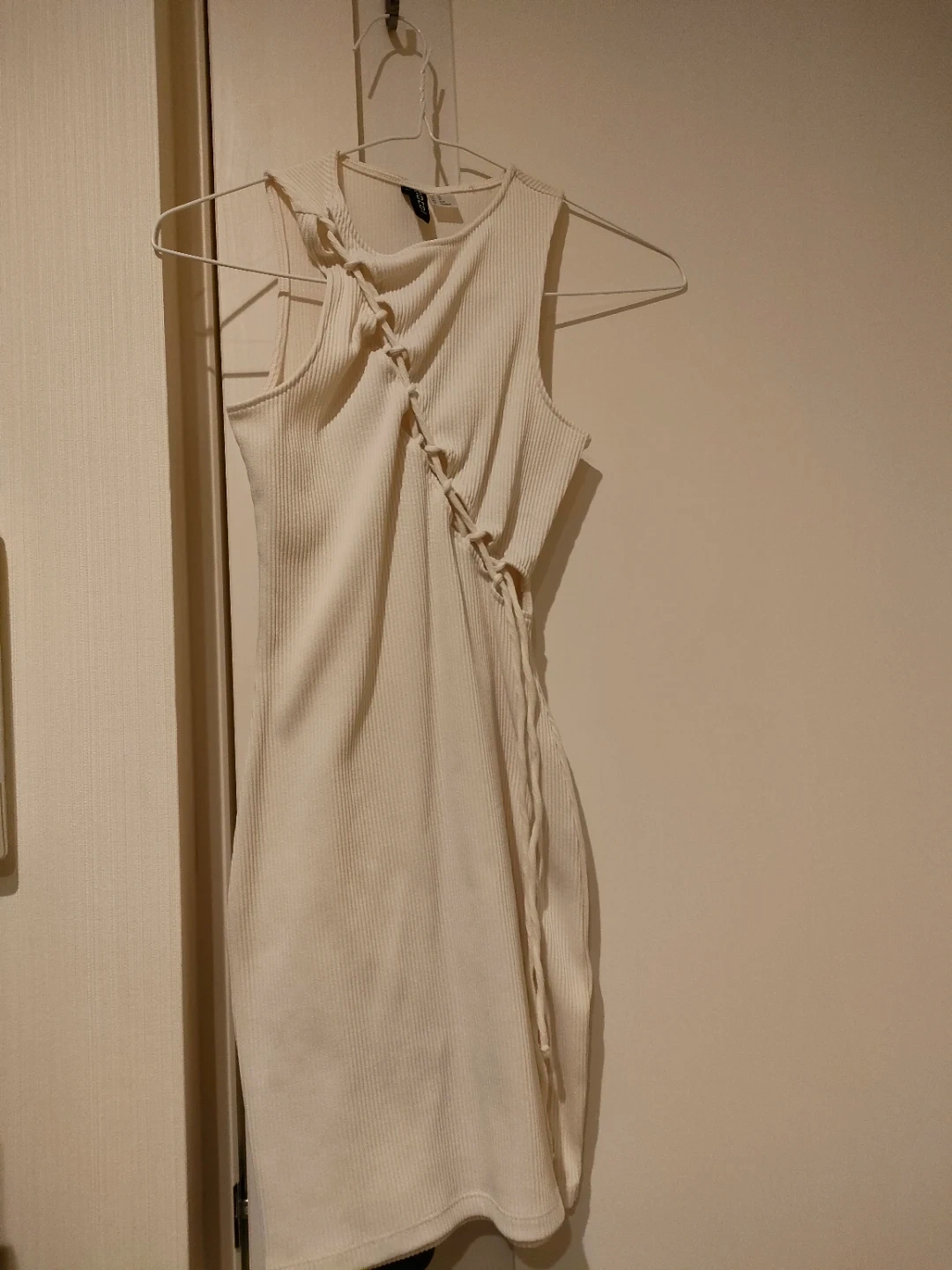 エイチアンドエムのワンピースです。 XS サイスです。 ・カラー:オフホワイト ・状態:未使用 ・デザイン:リブ素材、サイドに紐のデザインあり ご興味がありましたらご連絡をお願い致します。