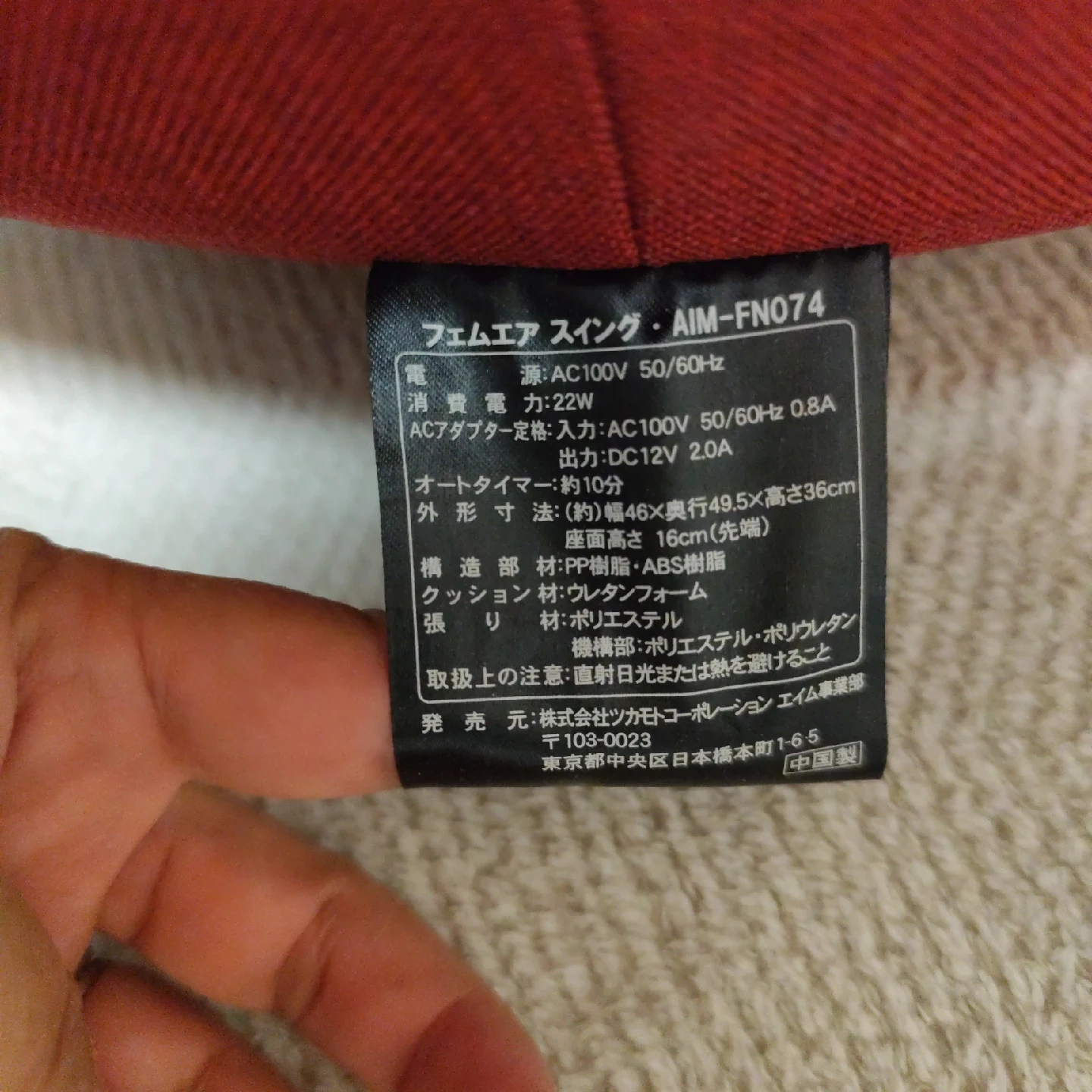 AiMY FEMAIR SWING 骨盤底筋を座りながらトレーニングするエイミーフェムエアスイング 外形寸法 約 幅460×奥行495×高さ360mm 質量 約 4.3kg(ACアダプター含まず) 適応体重 90㎏未満 メーカー小売価格 26,400円 ・商品説明書はありません 「エイミーフェムエアスイングの使い方」でネット検索してお使い下さい ・動作確認済 ・チェアーは箱に入れて手渡しの予定です 箱の蓋は内容確認出来る様に封はしていません ※ファミリーマートの駐車場で取引をと考えています ▲中古品(使用済み品)の為、神経質な方はご購入お控え頂きますようお願い致します ※他のサイトにも出品していますので購入ご希望の際は商品の有無を確認下さいm(_ _)m ※ノークレームでお願いします