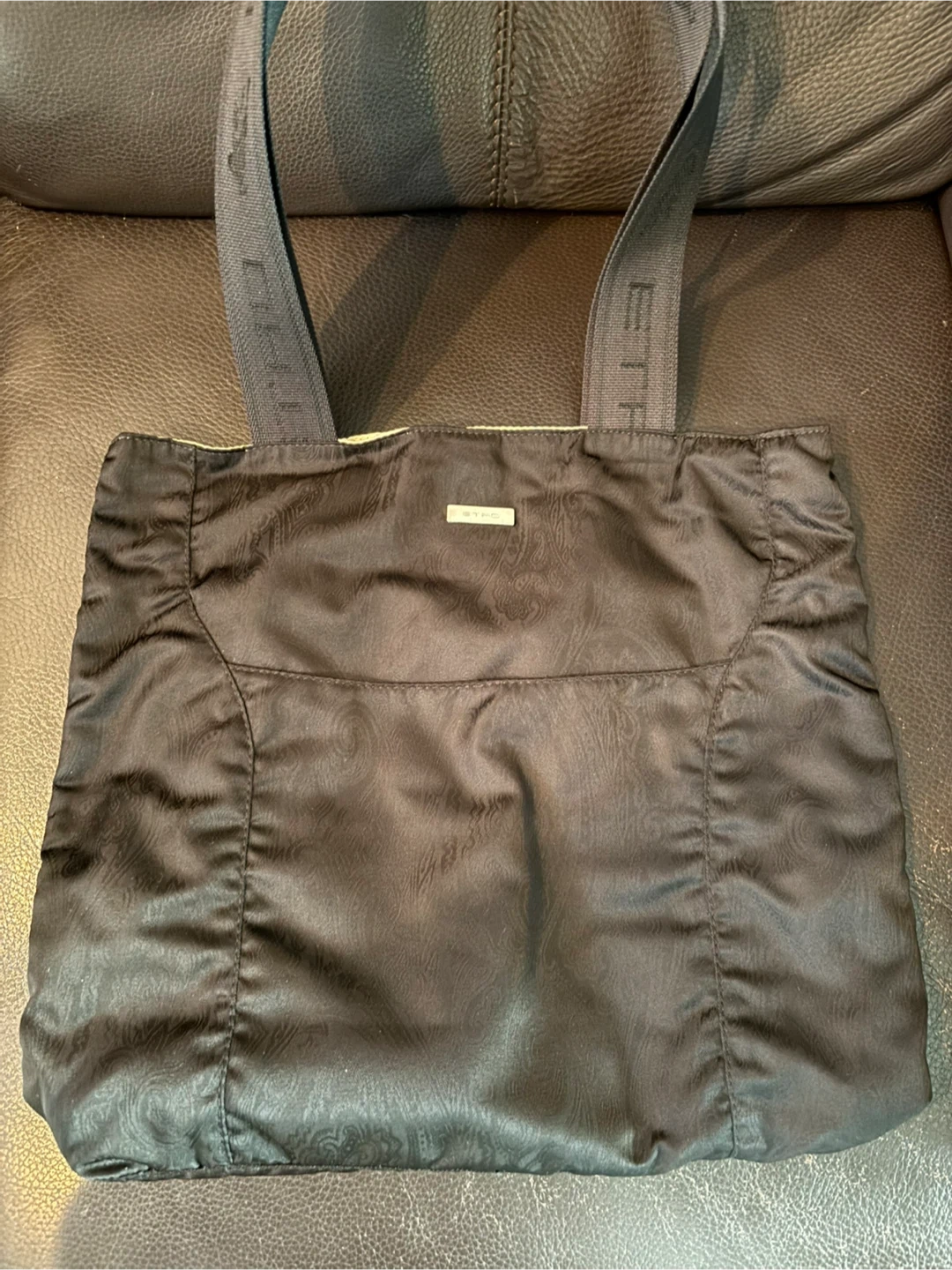 エトロのトートバッグです。 比較的美品かと思いますが、自宅保管しておりましたので気にならない方ご検討よろしくお願い致します。 受け渡し場所は、平日夕方でしたら九品仏駅周辺も可能ですのでご相談ください。 また、他商品とまとめてご購入くださった方には気持ち程度お値引き可能ですのでご相談ください。 ・カラー:ブラック ・素材:ナイロン系 ・持ち手にブランドロゴあり ・使用感少なめ ご不明点があればお気軽にご連絡ください