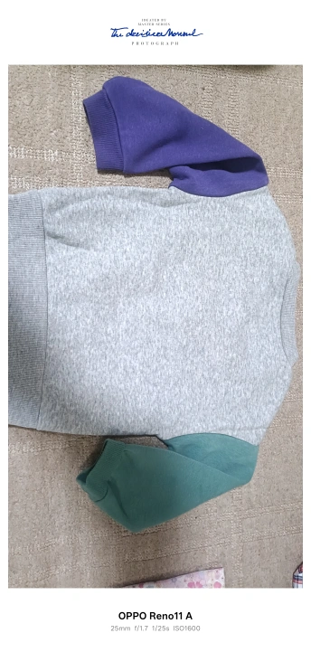 エルフィンドールのトレーナー95サイズです。 ・ブランド:エルフィンドール ・サイズ:95 ・色:グレー、グリーン、パープル ・使用感少なめ 中古品であることご了承ください