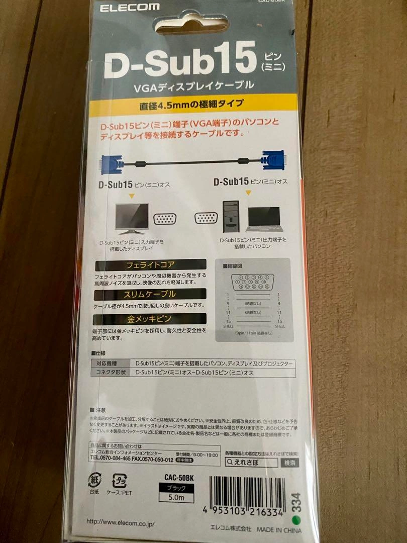 「エレコム D-sub15ピン ミニ ケーブル スリム 5m ブラック CAC-50BK(1個)」 エレコム 型番:CAC-50BK D-Sub15ピン(ミニ)コネクタのアナログ出力端子を持つパソコンと入力端子を持つディスプレイを接続可能です。ケーブル直径わずか「4.5mm」と、大幅なスリム化を実現し、狭い場所でも簡単に取り回しできるようになりました。 #エレコム #CAC-50BK #スマホ/家電/カメラ #PC/タブレット ご希望の方はお気軽にご連絡ください。