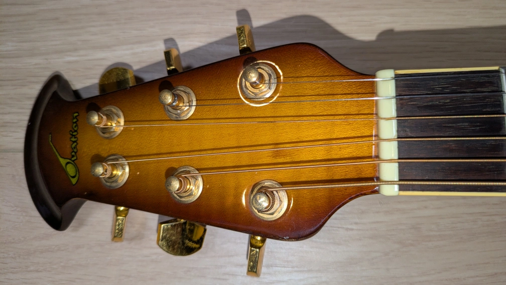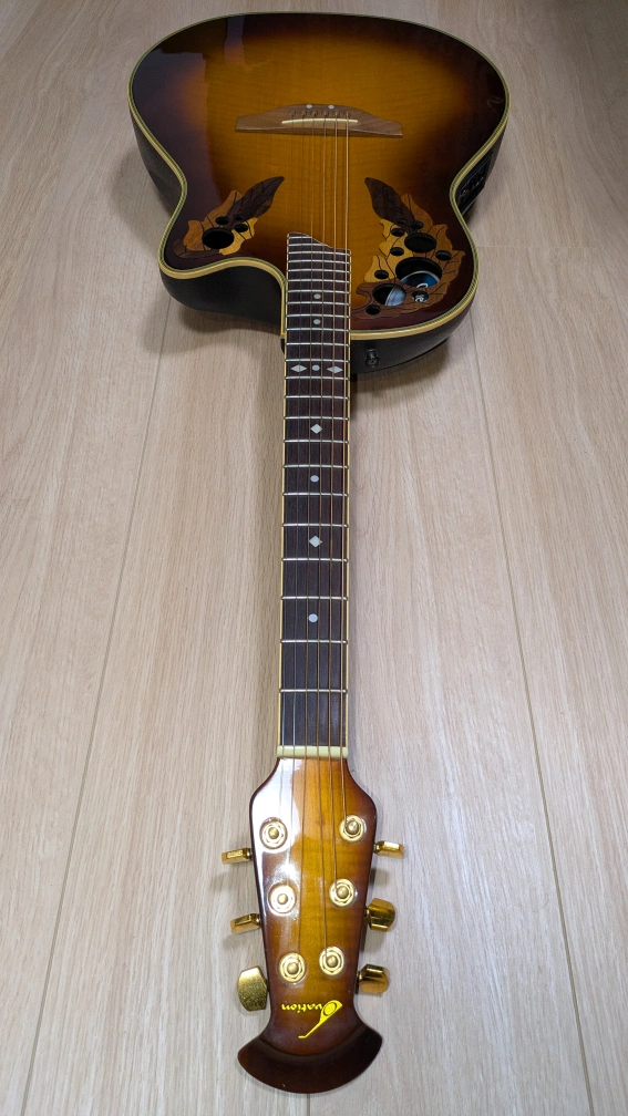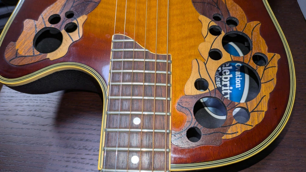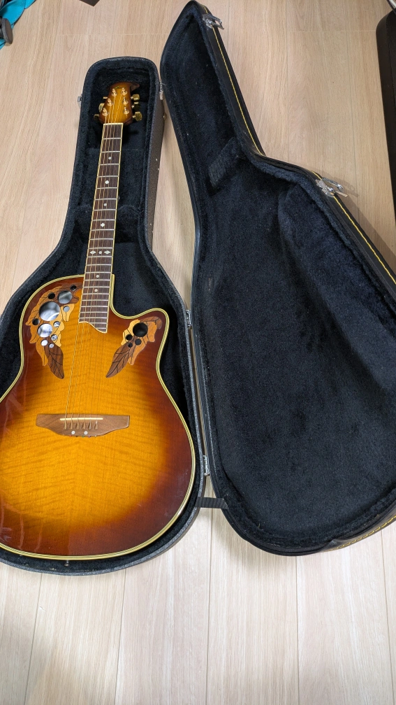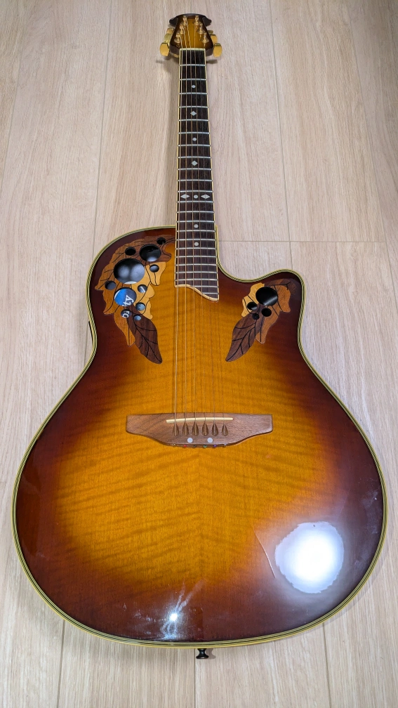 【中古美品】 オベイション セレブリティ デラックス Ovation Celebrity Delux ハードケース付 *エレアコの名機、オベイションのセレブリティ です。 *弦は半年前に張り替えました。 *使用上の問題はありませんが、胴体の下部にクリア塗装のヒビがあります。最後の写真でご確認ください。 *付属品は汎用のハー ドケースです。