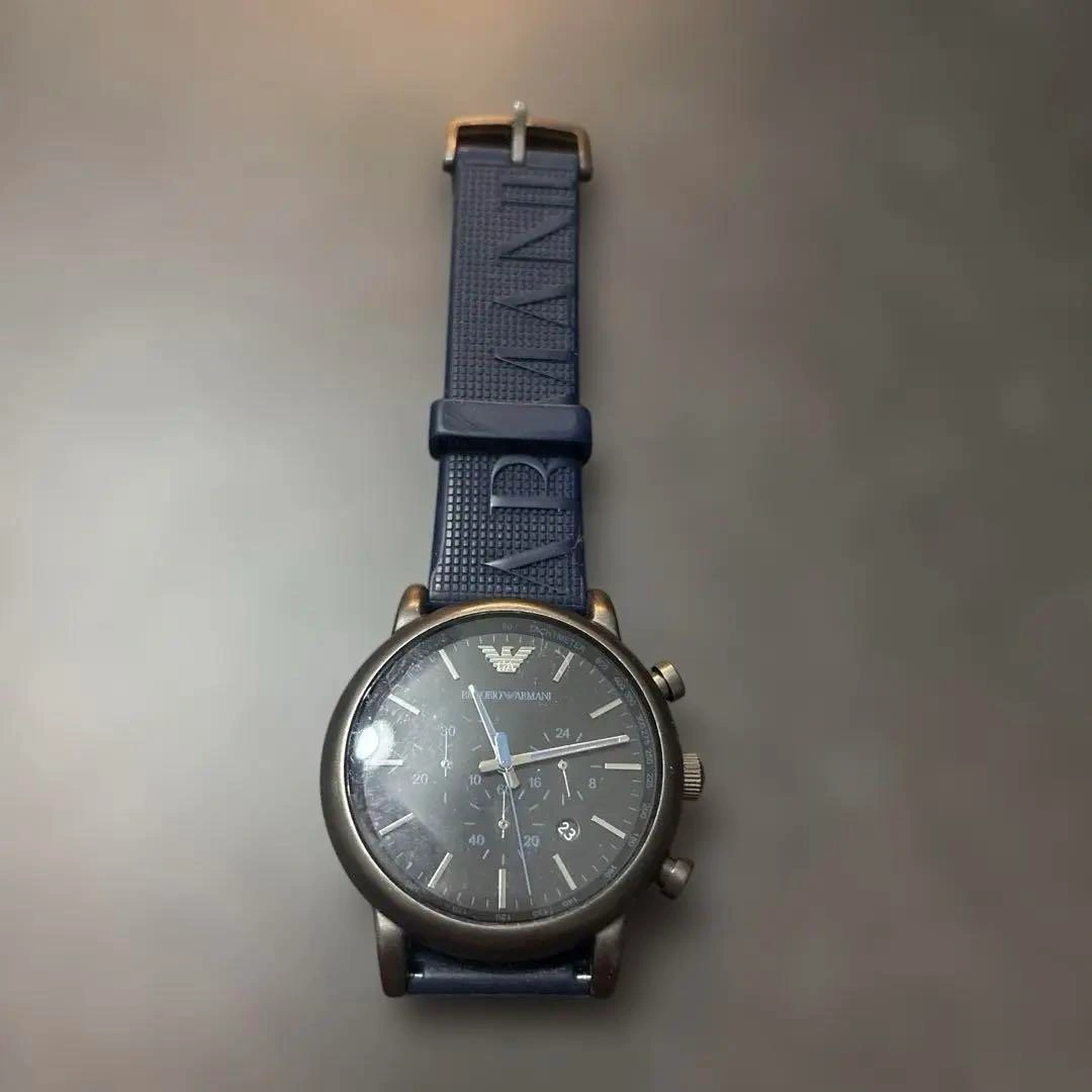 ご覧いただきありがとうございます。 Emporio Armani(エンポリオアルマーニ)の「Luigi」シリーズ、モデル AR11023 のメンズ腕時計です。 クロノグラフ機能付きでスタイリッシュなデザイン。ビジネスにもカジュアルにも合わせやすい一本です。 •ブランド:Emporio Armani(エンポリオアルマーニ) •モデル:Luigi AR11023 •状態:目立つ傷や汚れなし、電池なし •付属品:なし(箱・保証書・説明書はありません) ※付属品がない分、価格をお求めやすく設定しています。 ご希望の方はお気軽にご連絡ください。