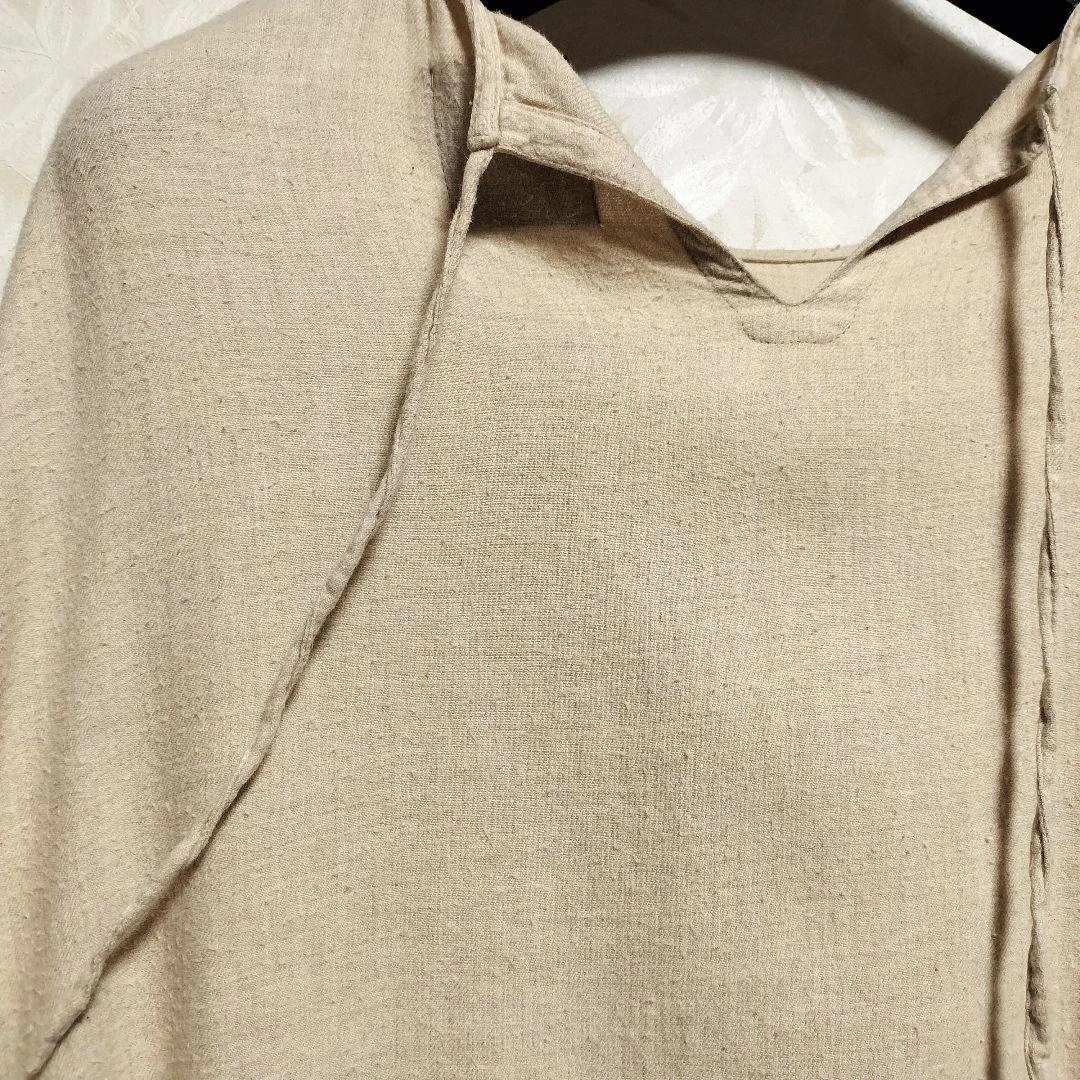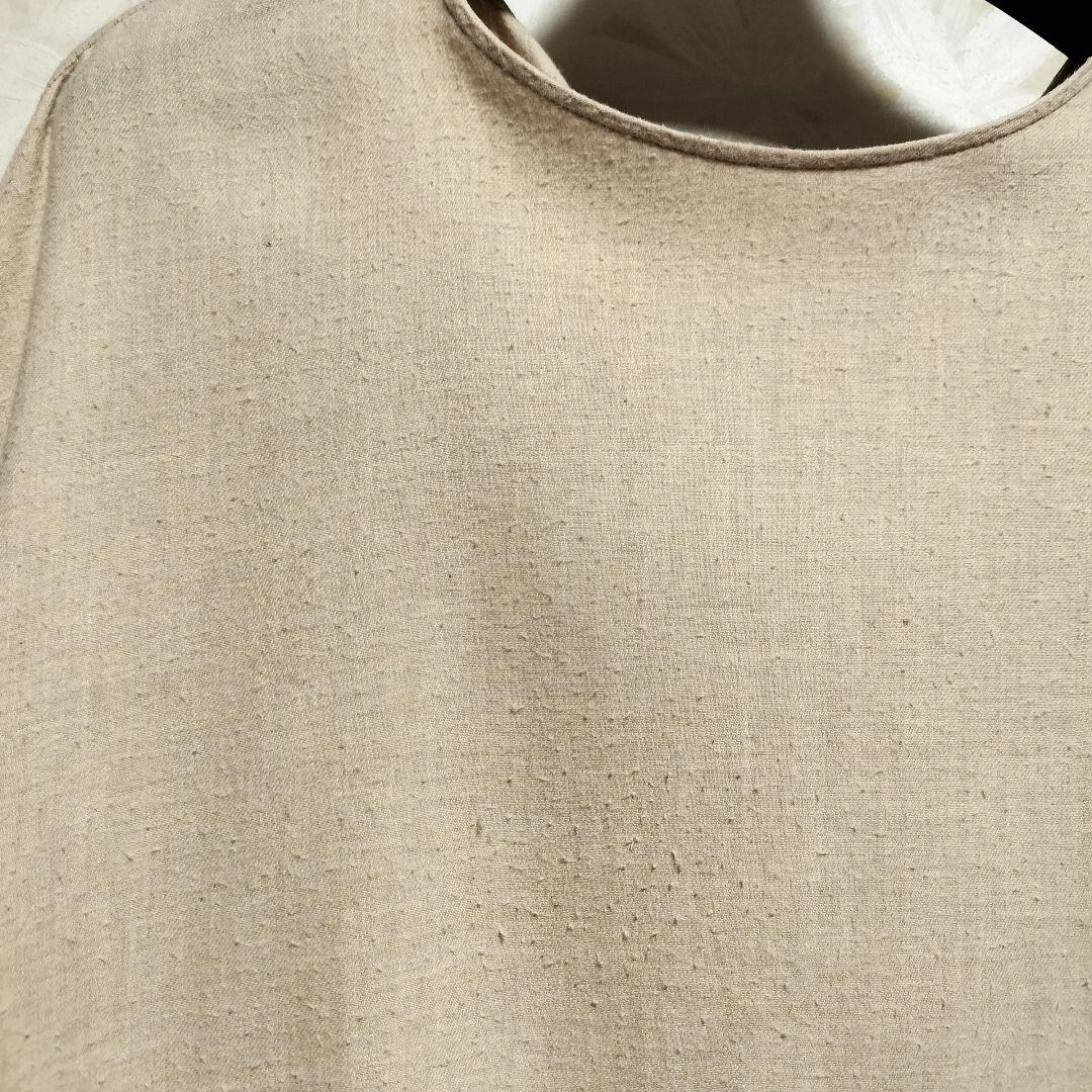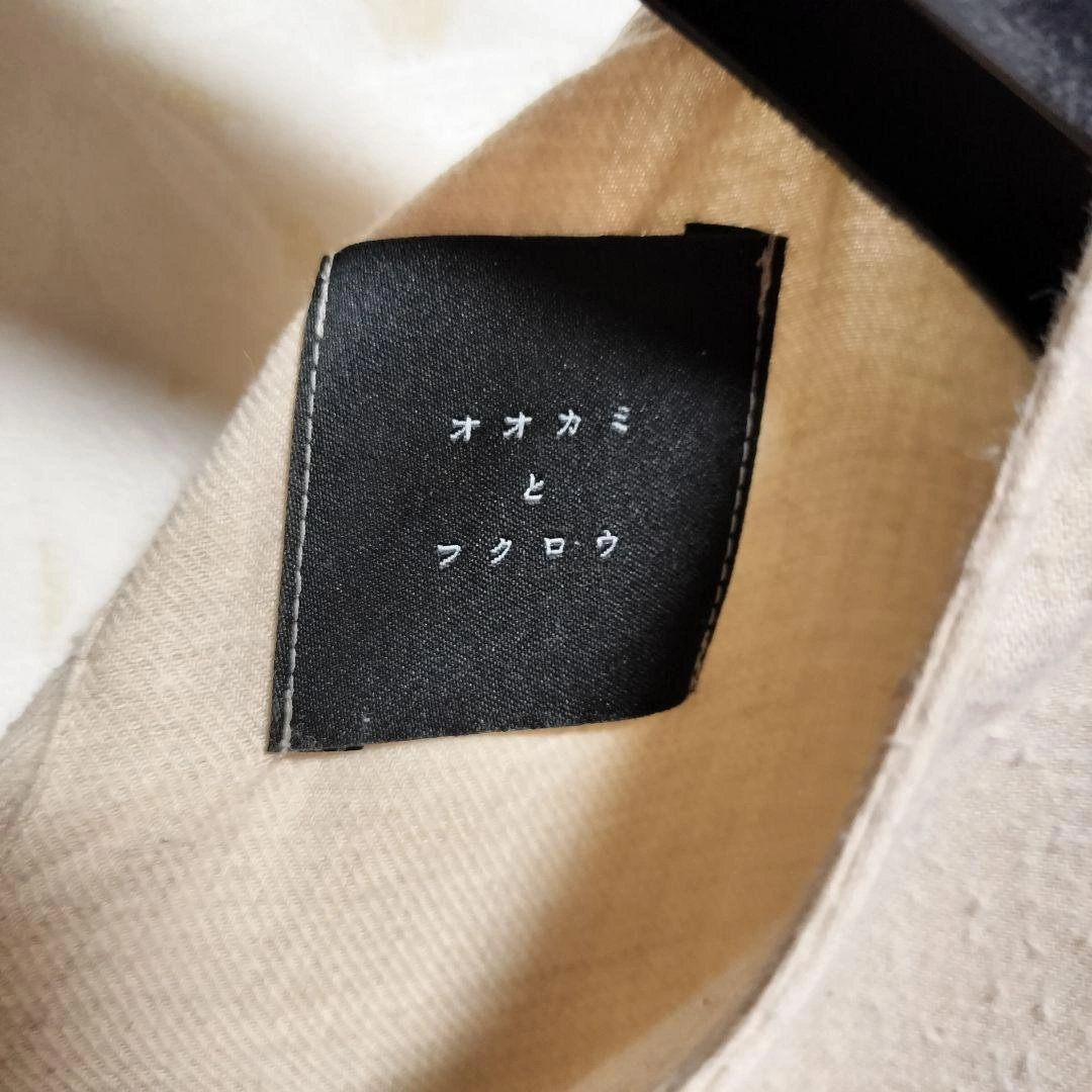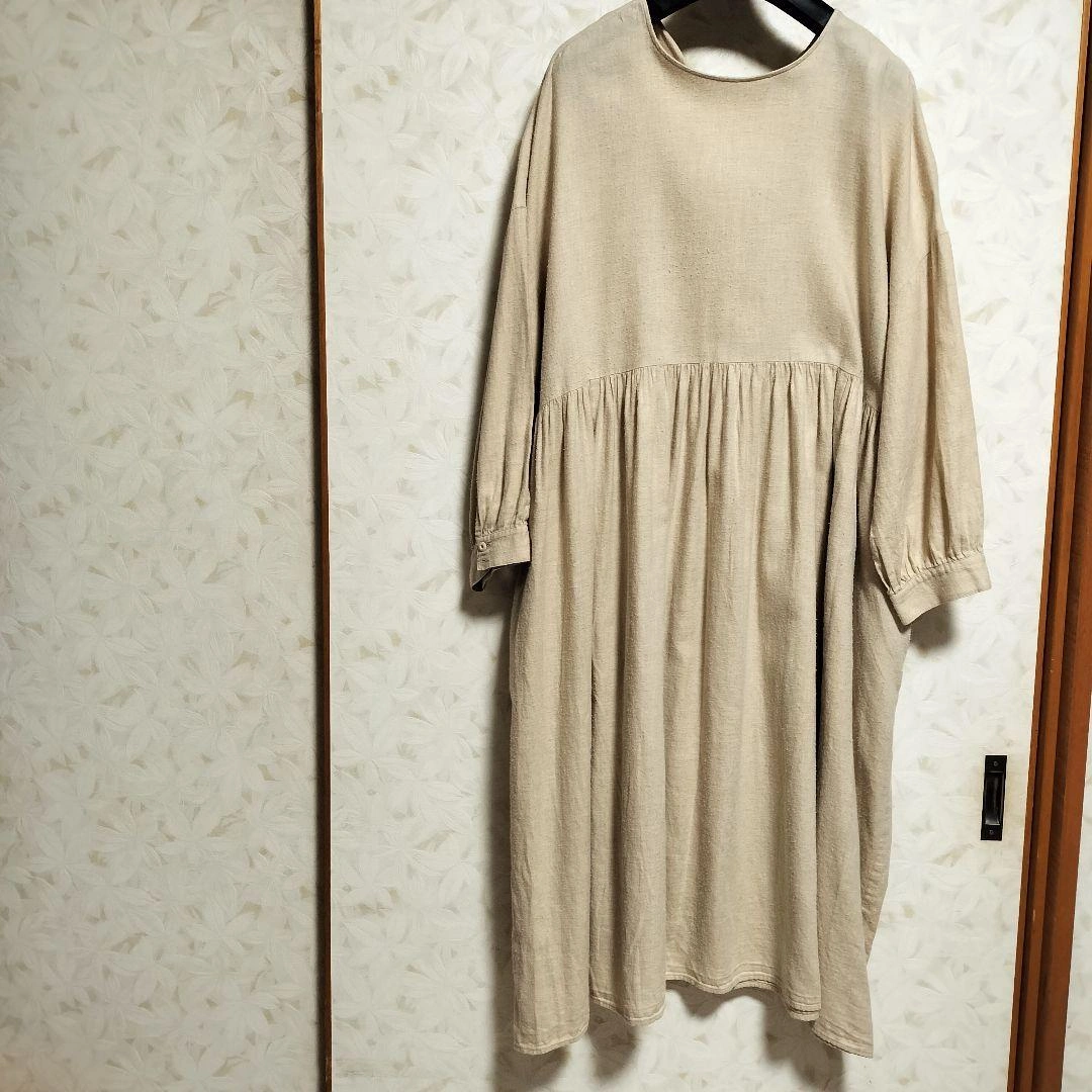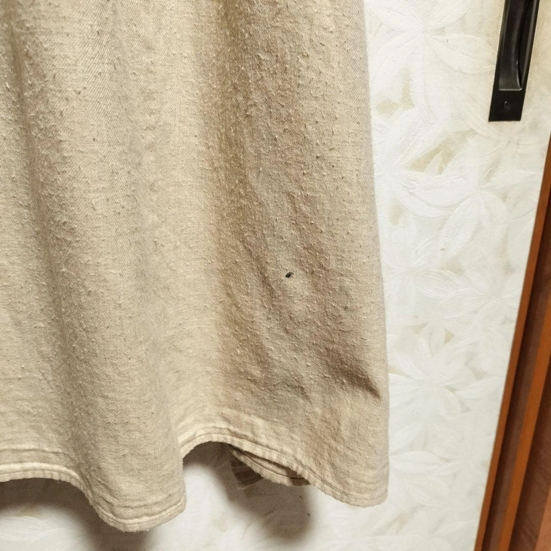 オオカミとフクロウのリネン風ベージュ長袖フレアワンピースです。ギャザー入りデザイン。 - 色: ベージュ - 袖の長さ: 長袖 - デザイン: フレアシルエット - 素材: 綿100% - ディテール: ギャザー入り 右フロント下の裾に黒い染みがあります。 全体的に毛玉がありますが、触り心地はとてもよくまだ着ていただけます。