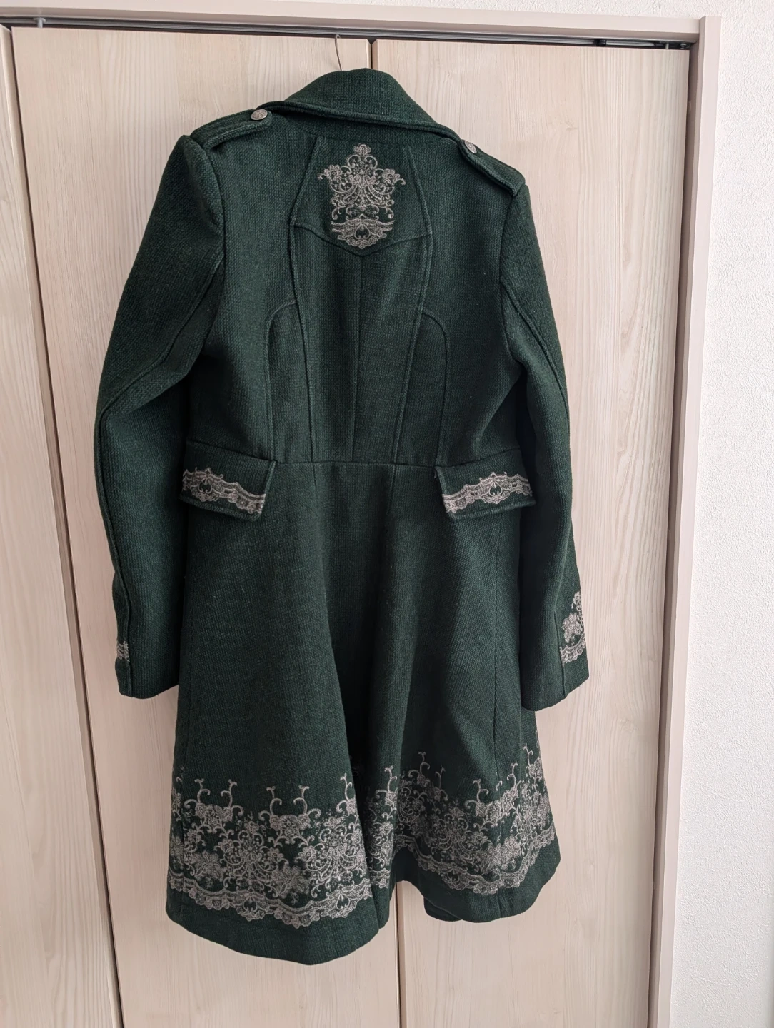 オッズアンジェロ 刺繍入り 裏地には毛玉ができています。 表地もあっちこっち 確か2012か2013年に発売されたものです。 こちらは手放したくないですが、肩が凝るから仕方ありません。 後ろの小さいベルトの飾りは取れてしまいました。 使用感あります コートです。 ・色:グリーン ・デザイン:刺繍デザイン ・状態:使用感少なめ ご不明点があればお気軽にご連絡ください。