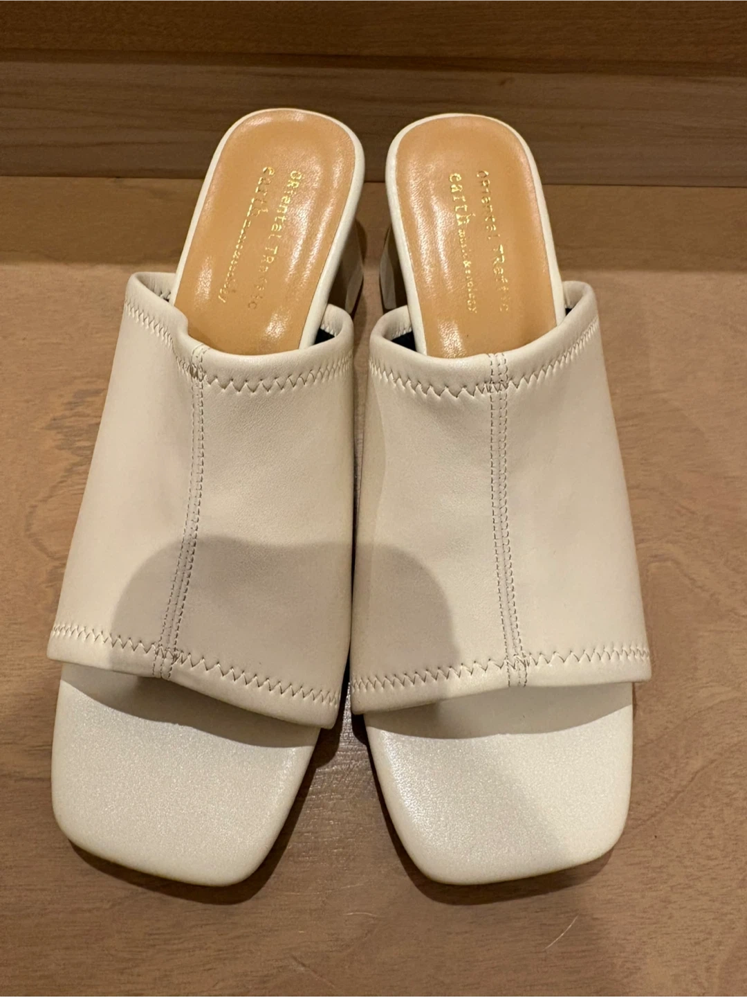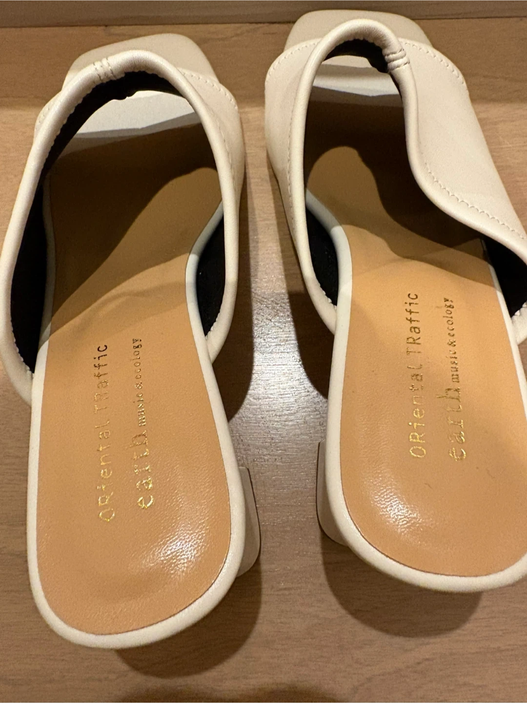 ORiental TRaffic × earth music & ecology コラボ ミュールサンダル(サボサンダル) サイズ:M 24.0でちょうどでした 夏に履こうと思って購入しましたが、結局一度も着用せずに保管しておりました。 試着のみの未使用に近い状態です。 特に目立った傷や汚れ等はございません。 一度人の手に渡った中古品になりますので、ご理解いただける方にお願いいたします。