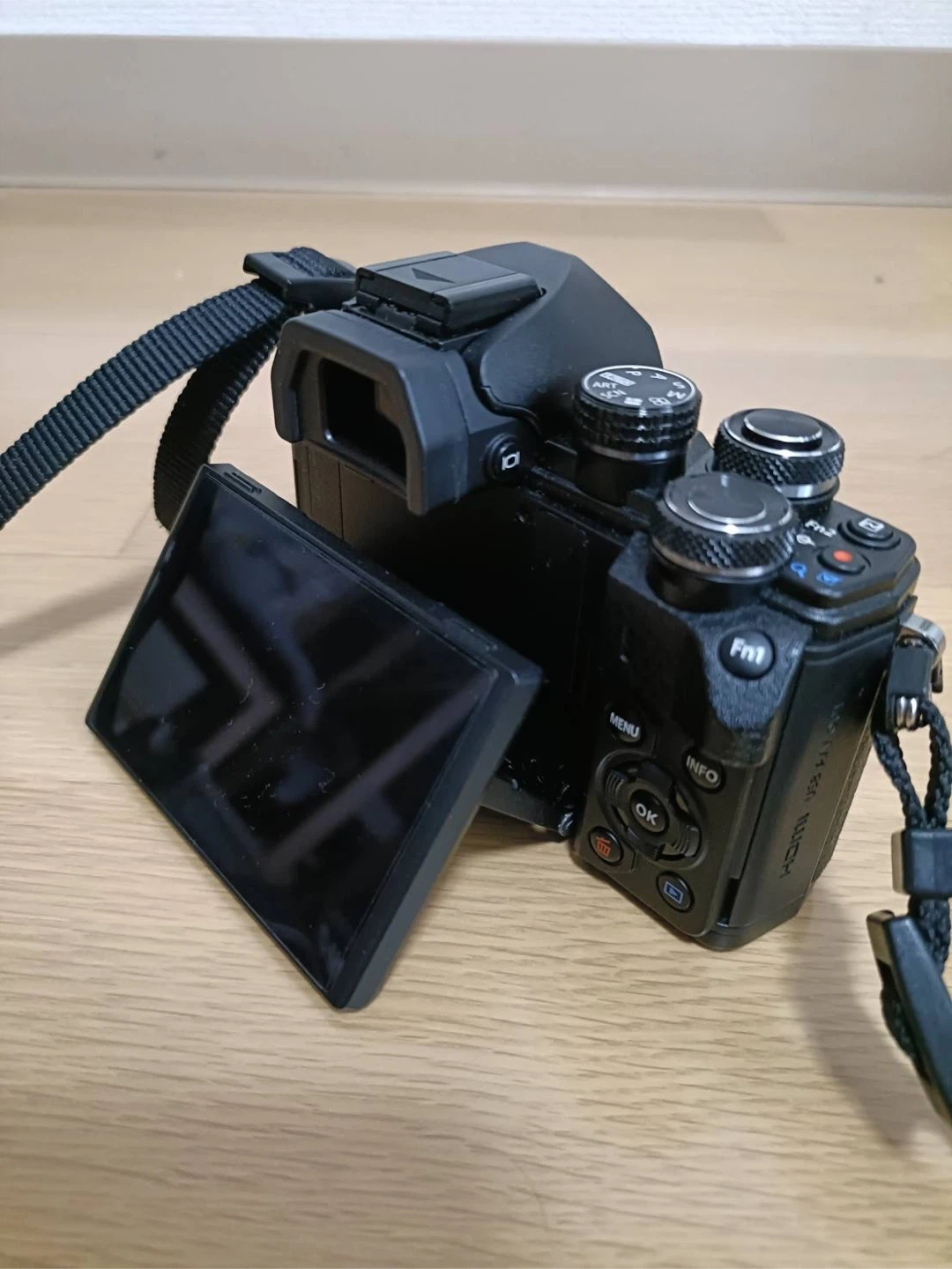 OLYMPUS OM-D E-M10 Mark II 出品内容 1.EM10 MarkII ボティーブラック 2.M.ZUIKO DIGITAL ED14-42mm F3.5-5.6EZ 3.M.ZUIKO DIGITAL ED40-150mm F4.0-5.6R 4.バッテリー 5.充電ケーブル 6.バッテリー用充電ケース 7.口径37mm用レンズ保護フィルター 8.カメラ、レンズケース ボティー下に三脚を取り付けた時の傷跡が若干あります。動作は全く問題ありません。 ブランド:オリンパス レンズマウント:マイクロフォーサーズマウント 手ブレ補正種類:ボディ内手ブレ補正 センサーサイズ:フォーサーズ 有効画素数:1605.0 万画素 総画素数:1720.0 万画素 標準感度(ISO):25600.0 ISO 連写撮影/秒:8.5 コマ ファインダー:あり ファインダー倍率:1.23 倍 液晶モニターサイズ:3.0 インチ 液晶モニタータイプ:チルト液晶 記録画素数(動画):フルハイビジョン(1920×1080) ハイビジョン(1280x720) 動画記録フレームレート(fps):60.0 fps 電池種類:専用リチウムバッテリー 本体総質量:399.0 g RAW:12bit 本体機能:ワイヤレスリモコン対応 手ブレ補正 ゴミ除去 タッチパネル 電子水準器 内蔵フラッシュ PictBridge 撮影機能:RAW撮影 顔認識 デジタルフィルター 動画 タイムラプス ライブビュー バルブ撮影 タイム撮影 RAW+JPG同時記録 HDR撮影 対応メディア:SDカード SDHCカード SDXCカード ネットワーク:Wi-Fi 色:ブラック系