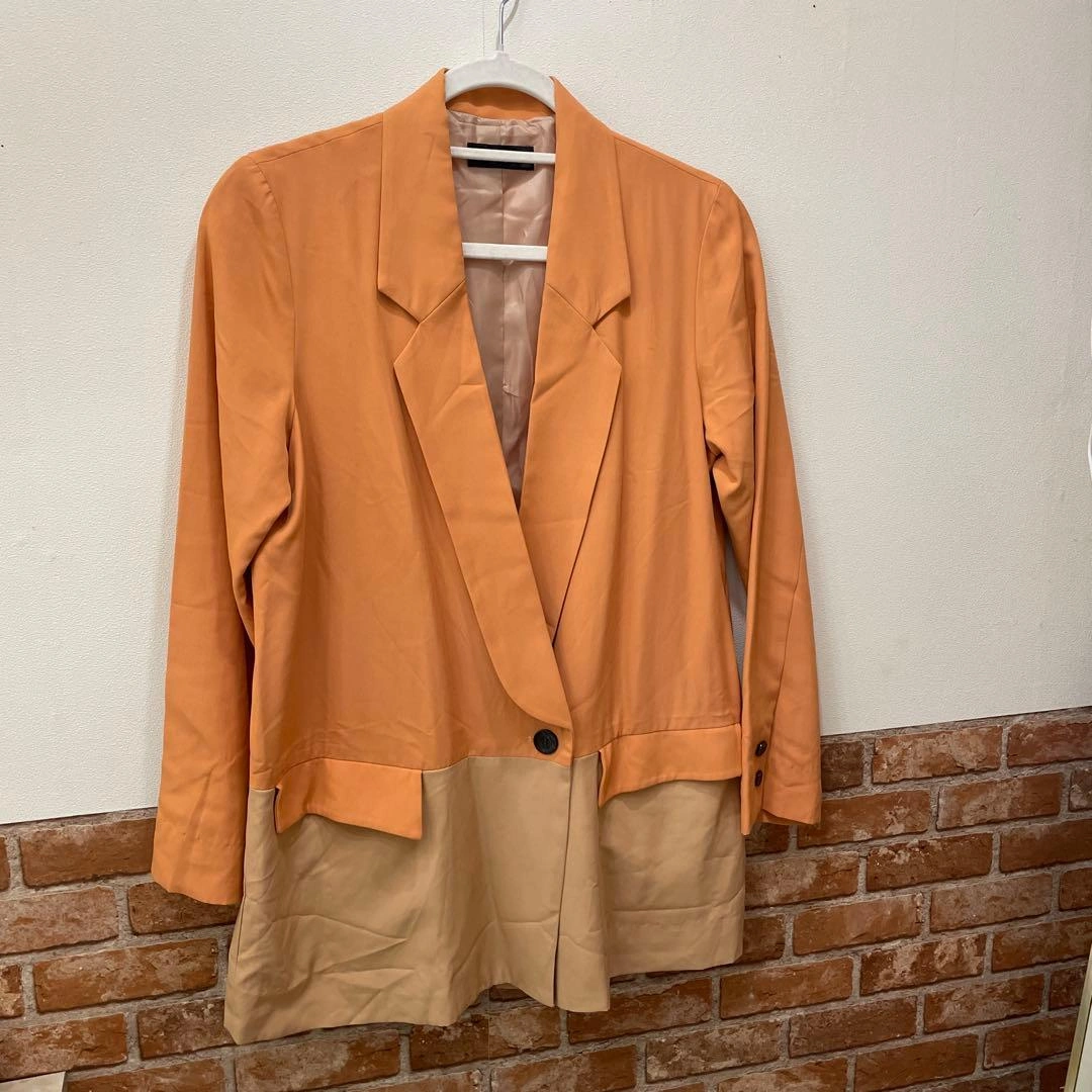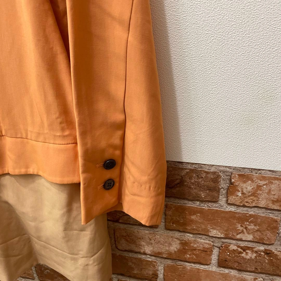 オレンジのテーラードジャケットです。ポリエステルとレーヨン混合素材で、快適な着心地かと思います。 使用感があります。 - 色: オレンジ - デザイン: テーラードジャケット - 素材: ポリエステル58%、レーヨン42%、裏地ポリエステル100% ご希望の方はお気軽にご連絡ください。