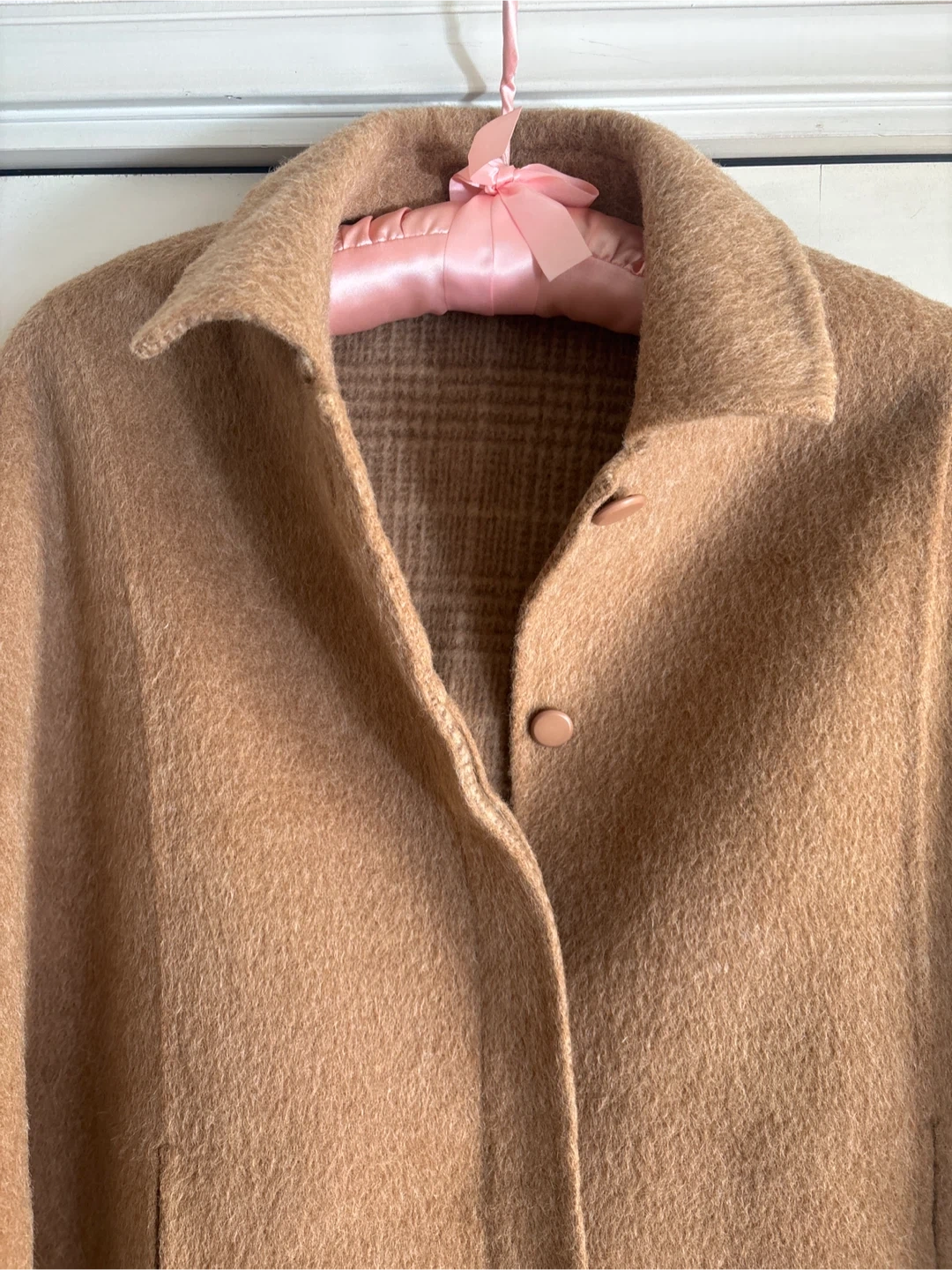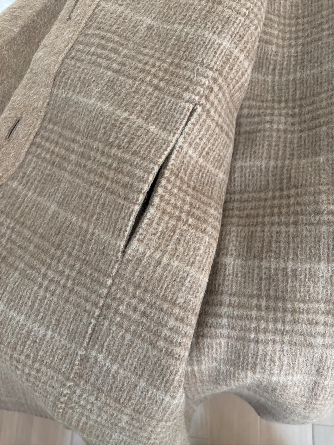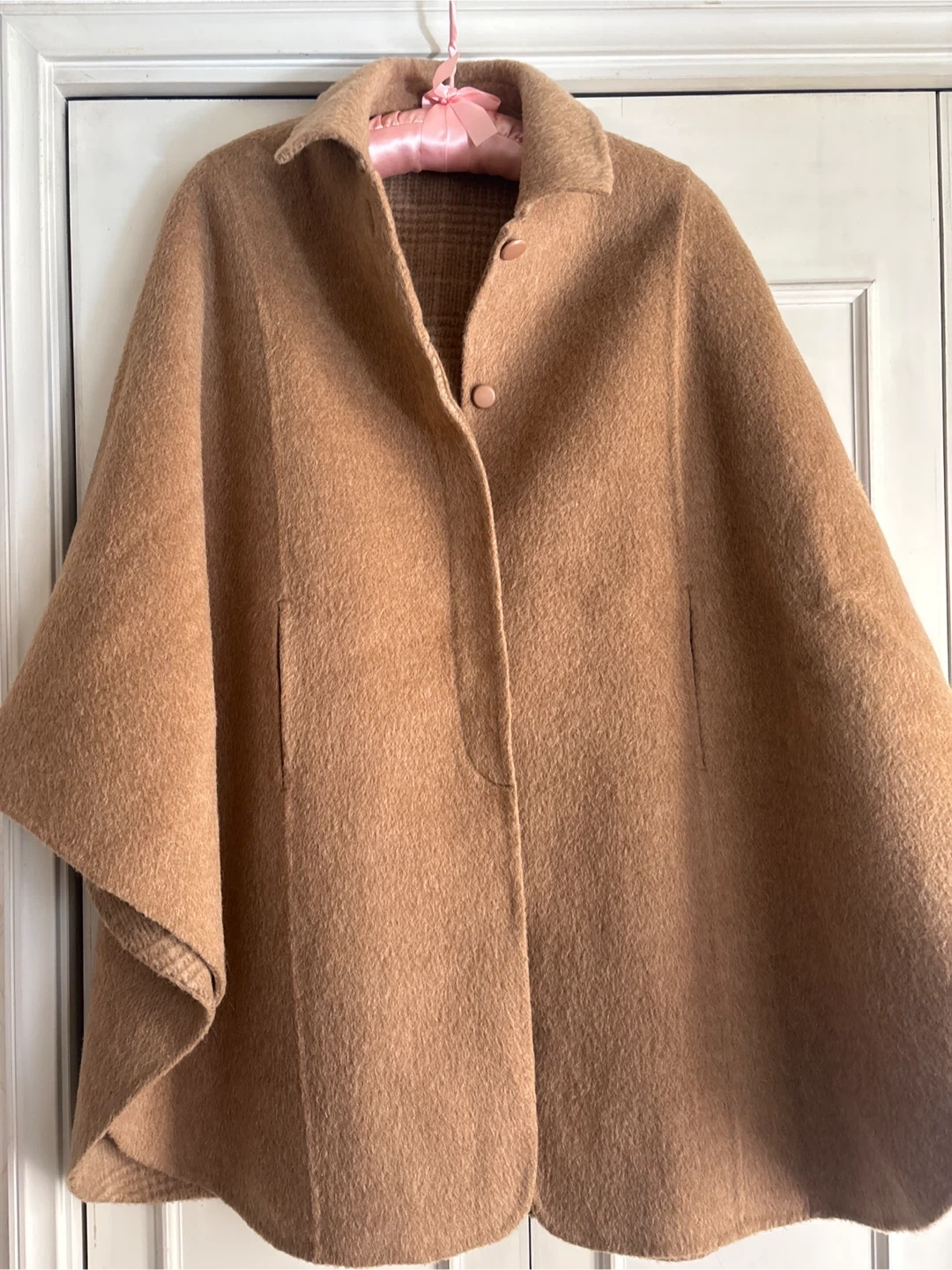 オンワードのケープコートです。 ウールにアルパカモヘアなど入っていて暖かい素材です。 内側はシックなチェック、前の部分から両手が出ます。 着丈85㎝ ・色:ベージュ ・内側:チェック柄 ・素材:表地 毛93%、ナイロン5%、ポリエステル2% ・サイズ:M〜L 中古品であることをご了承ください。