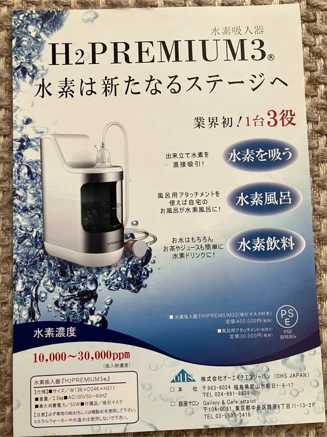 オーエイチエスジャパン H2 Premium 3 水素吸入器