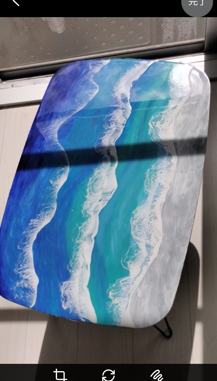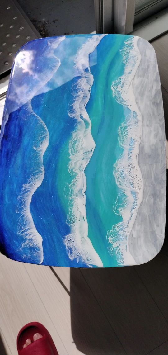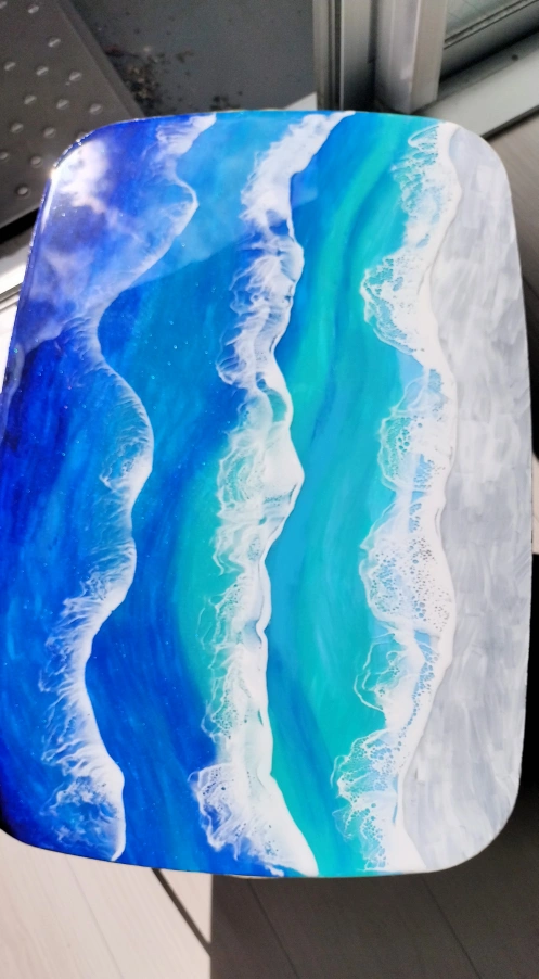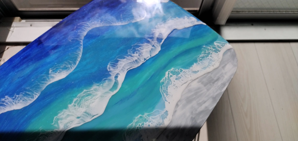 サイズですが、約、縦横40×60cm高さ31cmとなります。 使わないときは、折り畳み可能なので、使用用途に応じて収納出来てとても便利です。 波模様が3段はいっているゴージャスで手間暇かけた作品となります。 波の部分は段差になっておりますので、予めご了承くださいませ。 ハンドメイド作品です。 ラメが大量に入っており、キラキラ輝いてとても綺麗です。 USEDテーブルにレジンで波をかけました。波をかけて以後は、未使用品となります。 気になる箇所があれば、アップで撮影しますのでリクエストお願い致します。 他にもコースター4枚セット等を出品しています。 お気に入りのカラー、お気に入りの波がきっと見つかりますように♪ スマホやモニターの種類により、実際の商品との色合いなど、見え方が若干異なる場合がございますのでご了承ください。 レジンの性質上、小さな埃や気泡が入ったり、凸凹やソリ、ヨレ等がある場合があります。 ハンドメイド作品であり、また安価にて出品致しておりますので、ご理解頂きご購入いただきますようお願いいたします。 波 海模様 青 水色 ブルーグラデーション エメラルドグリーン ティファニーブルー ターコイズブルー ウルトラマリン 宮古ブルー ハワイ サイドテーブル ミニテーブル 家具 デスク コーヒーテーブル 机 勉強机 学習机 ダイニング