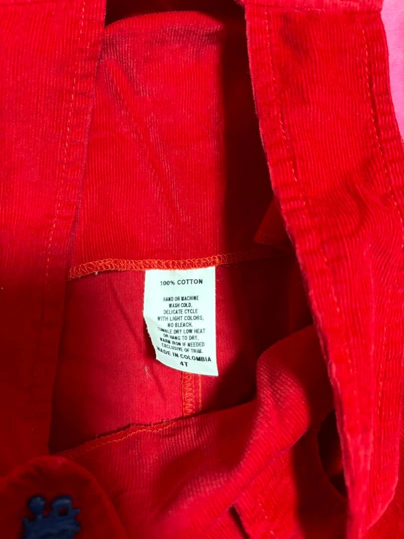 ヴィンテージキッズ古着で購入し数回着用しました。 久しぶりに子供に着用させようとした所パツパツだった為出品します。 サイズ表記4Tになっていますが小さく105㎝の子供が着用した所パツパツ足首が見えていた為普段95くらい着用している子がいいと思います。 肩紐のボタンがほつれかけています。 オムツ替えしやすい股にボタンあり。 ヴィンテージ古着にご理解いただける方ご購入下さい。 ご希望の方はお気軽にご連絡ください。