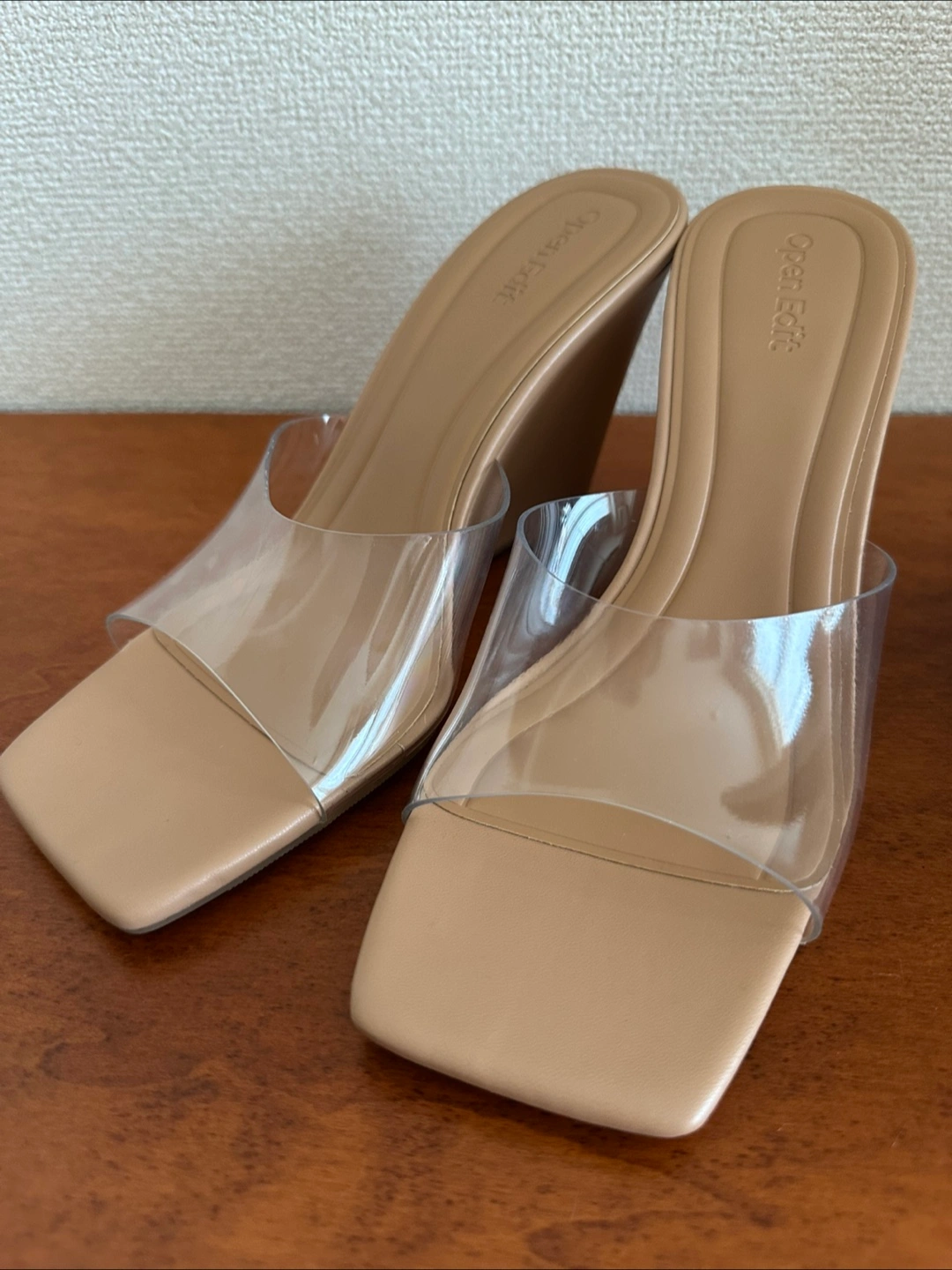 美品!ヒールが可愛い!クリアコンビサテンミュール ブラック M