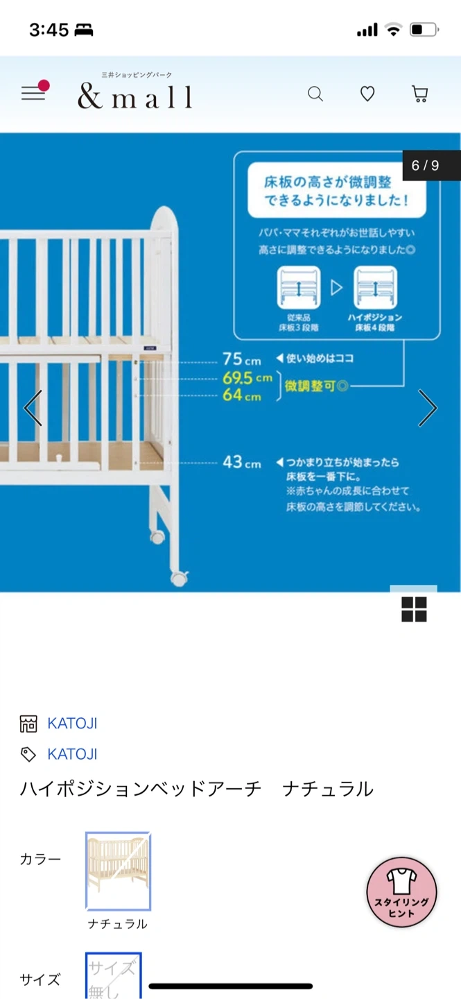 カトージのハイポジションベッドです。 ・ブランド:KATOJI(カトージ) ・商品名:ハイポジションベッド アーチ ナチュラル ・カラー:ナチュラル ・サイズ:120cm*70cm 0歳から2歳使用です。 子供添い寝が多いです。あまり寝っていませんが、ドア側がテーブル貼ったことあります。そのテープ貼りの痕があります。専用の洗剤で剥がすことは可能と思います。 マトレスも120cm*70cmのついてます。 マトレスは日本製です。手押しで洗濯できます。 購入時の写真を添付しています。 10km範囲以内であれば送ることも相談可能です。 中古品であることご了承ください。