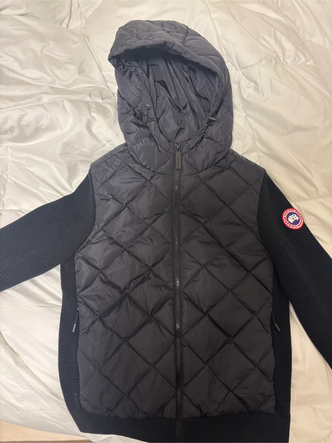 カナダグースのキルティングニットフーディです。 ・ブランド:カナダグース ・サイズ:M ・色:ブラック ・MADE IN ROMANIA 定価123,200円 新品になります お友達から誕生日プレゼントと頂き元々持っていて被ったので出品します! 定価て購入するよりかは安いかと思います… お渡し場所は川崎駅から横浜駅までの範囲でしたら可能