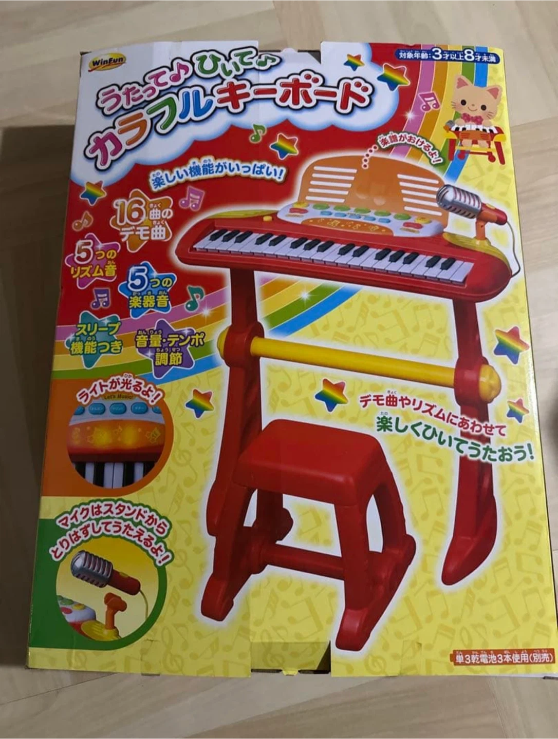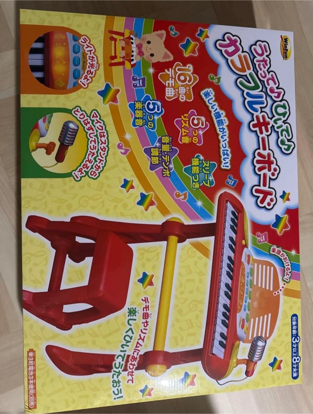 16曲内蔵のカラフルなキーボード、マイク付きで楽しく演奏! - 商品名: カラフルキーボード - 対象年齢: 3歳以上 - 機能: 16曲内蔵、5種類の楽器音 - 付属品: マイク付き - 色: 赤 - デザイン: スタンド付き 自宅で大切に保管しておりますが、 お気になさる方は購入をお控え下さい