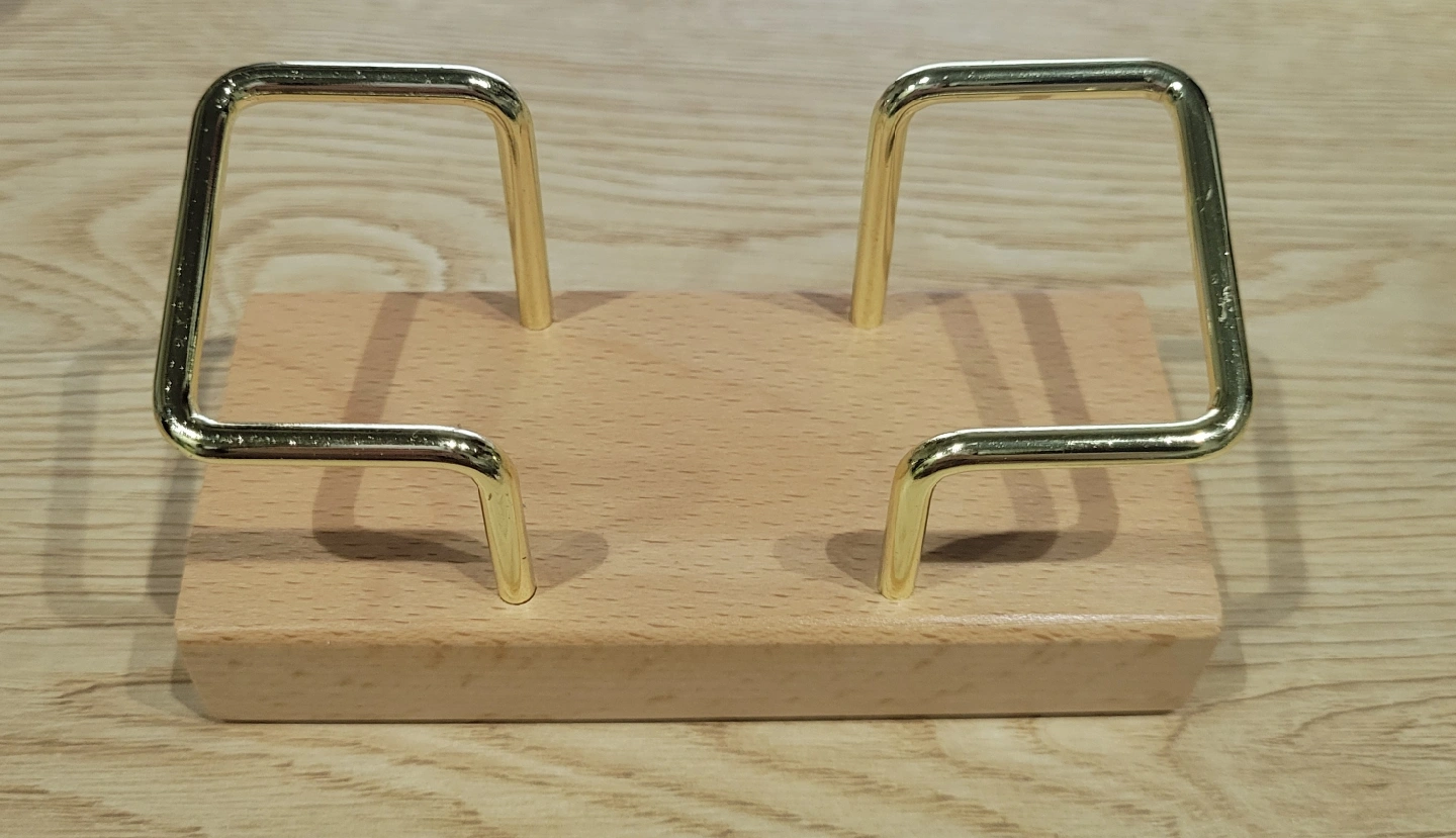 木製のカードスタンドです 汚い部分はなく、金属の部分に目立つ傷が1箇所あります。写真の右の部分です 木の台の横の長さは約10.5センチです。 写真は黄色い色味になってますが、ライトブラウンに近い色です。 ご不明点があればお気軽にご連絡ください