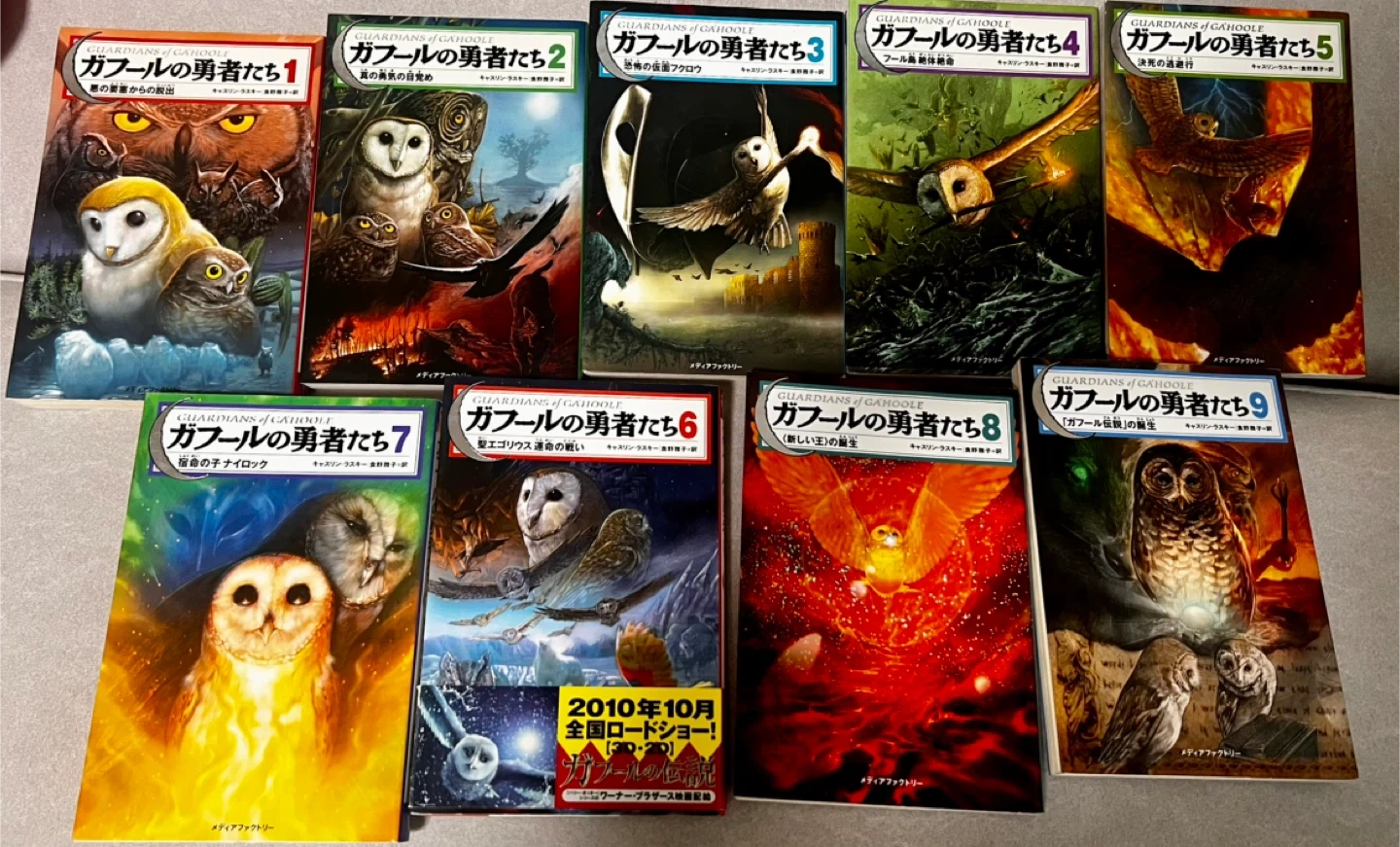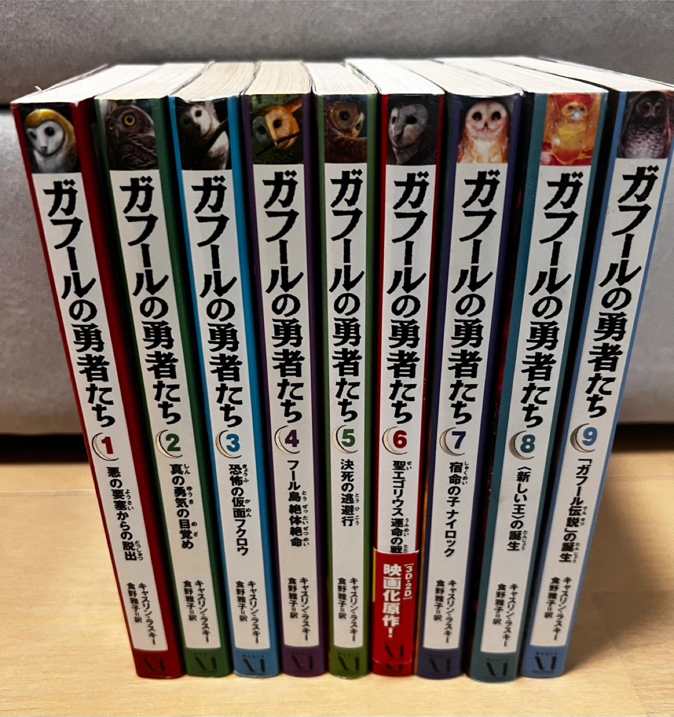 「ガフールの勇者たち 1巻〜9巻」 キャスリン・ラスキー/食野雅子=訳 定価: 各¥800 ご覧いただきありがとうございます。 自宅で長期保管のため、側面に黄ばみ等の汚れはありますが、中はダメージが少なくまだまだきれいに読んでいただけます。 読書に慣れている子ですと小学3〜4年生頃から 楽しめると思います。ふりがなつき。 しおり切り取り済:1.5.8巻 また裏表紙をテープで止めている巻があります。(1.9巻) 写真でご確認の上、ご購入願います。
