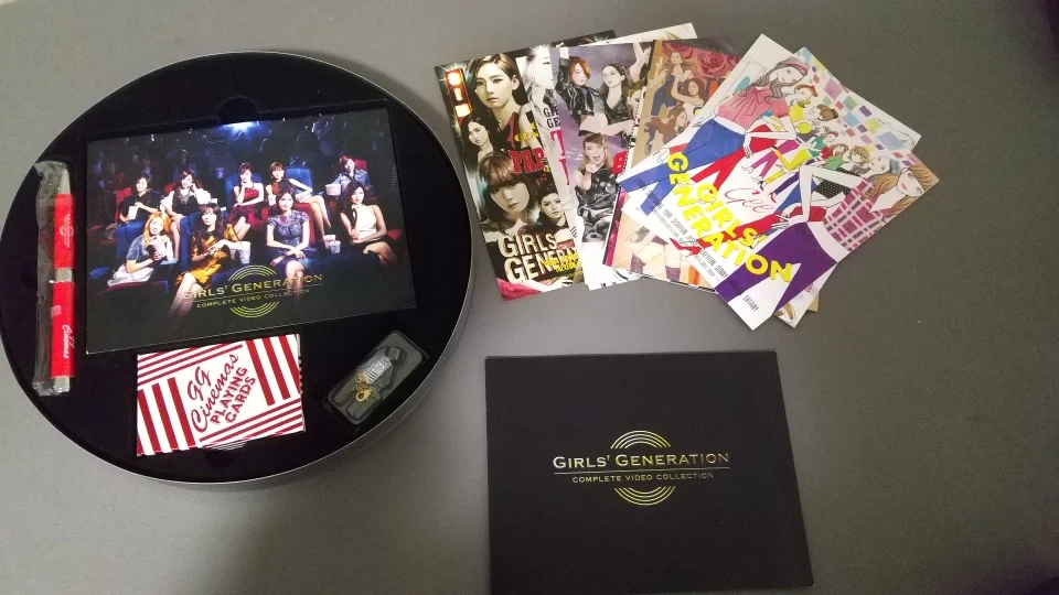 ガールズジェネレーションのCOMPLETE VIDEO COLLECTIONです 韓国盤と日本語盤とミュージック映像のDISKと付属品つき ・付属品:イラストカード、トランプ、ボールペン、ストラップなど ・状態:全体的にきれいですが最初の写真のケースのみいろはげが一部あります。 キーホルダーはひとつです。 写真をご確認ください。