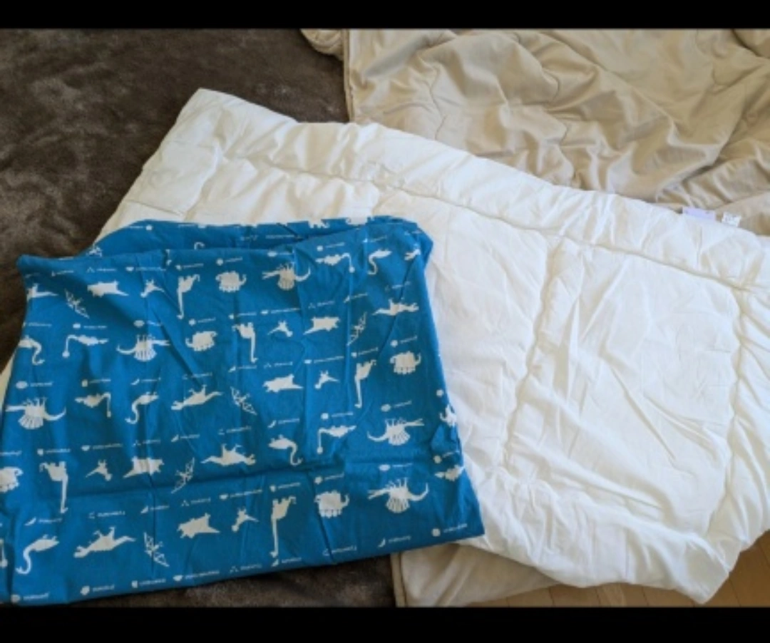 外泊用に用意したもので、3回ほど使用しましたが汚れはありません。次回から実家で用意してくれることになったので、この布団は不要になりました。 ① 敷カバー 約72×123cm 生地: 綿100%(サイドファスナータイプ)※裏面に生地の継ぎ目があります ② 園児用 敷布団 約70×120×5cm 側生地:ポリエステル65%・綿35%/中綿:ポリエステル100%( テイジンの洗えるウォシュロン中綿) 2023年にAmazonで6000円ほどで購入しました。 喫煙者はおらず、ペット等もおりませんが、個人宅での保存ですのでご注意ください。
